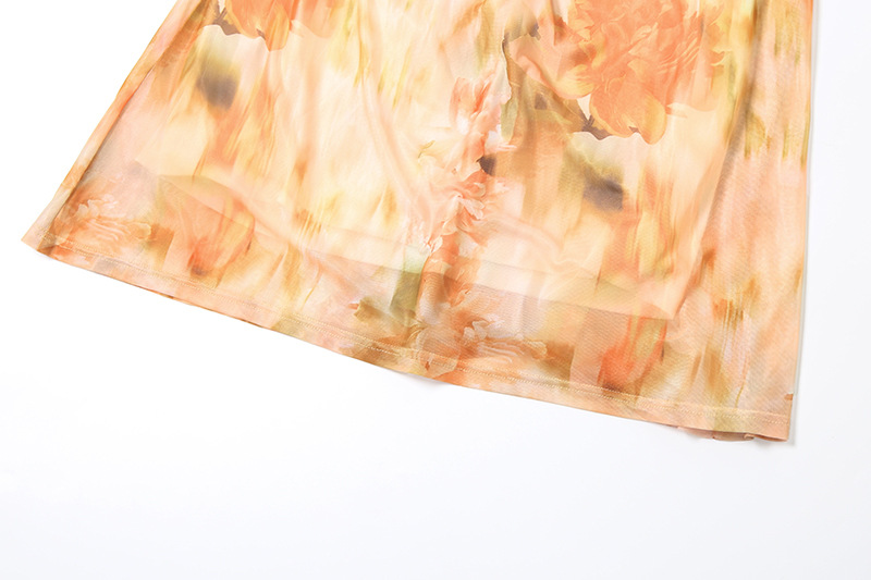 Vestido de mujer, ropa de primavera verano, estampado sexy, cuello halter, encaje, malla, cuello en V.