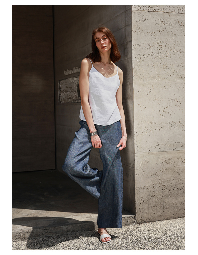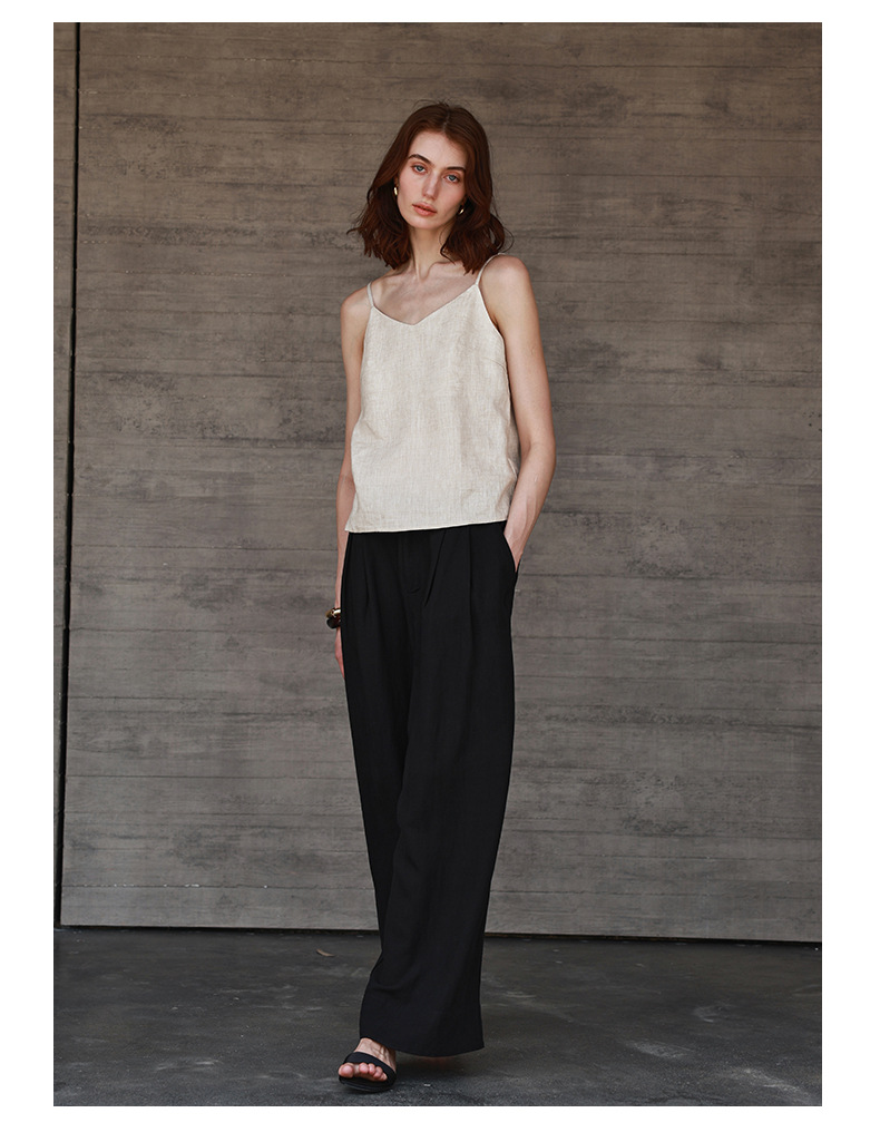 Amoi Linen Vest Women Adjustable Shoulder Strap Small V neck Design Sling Summer Minimalist Wear Top Women