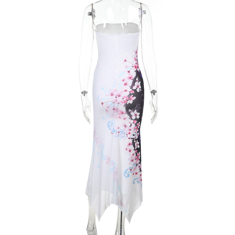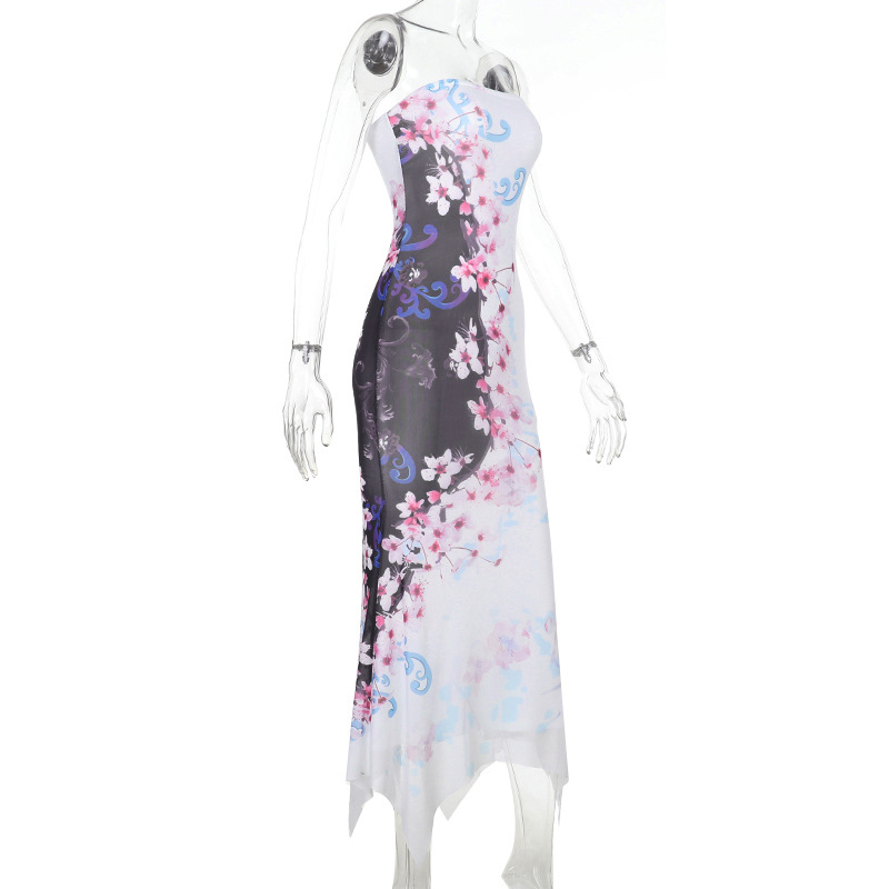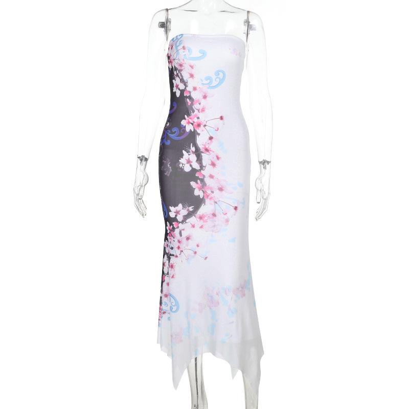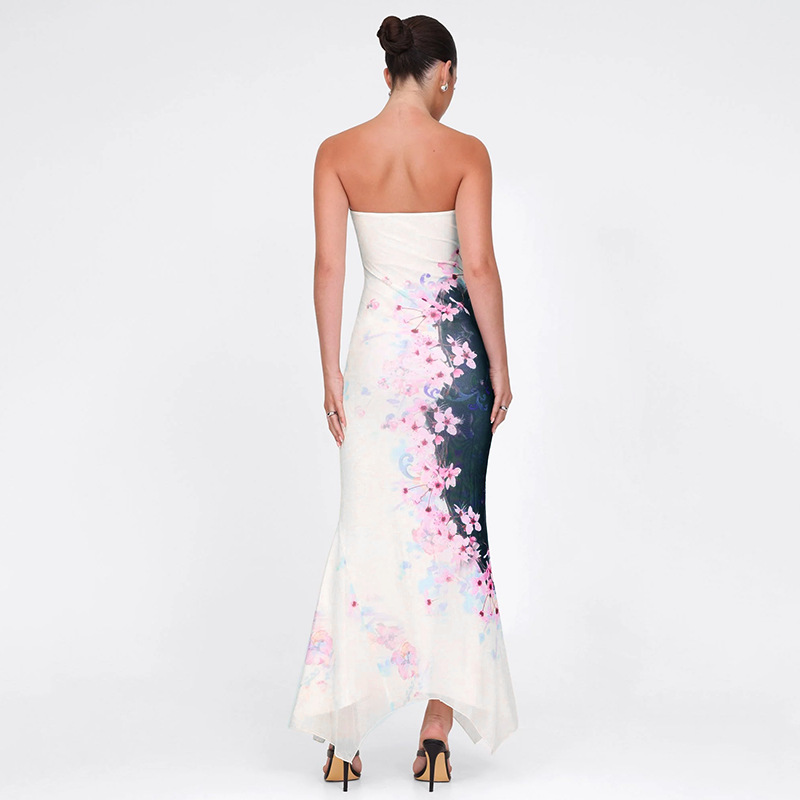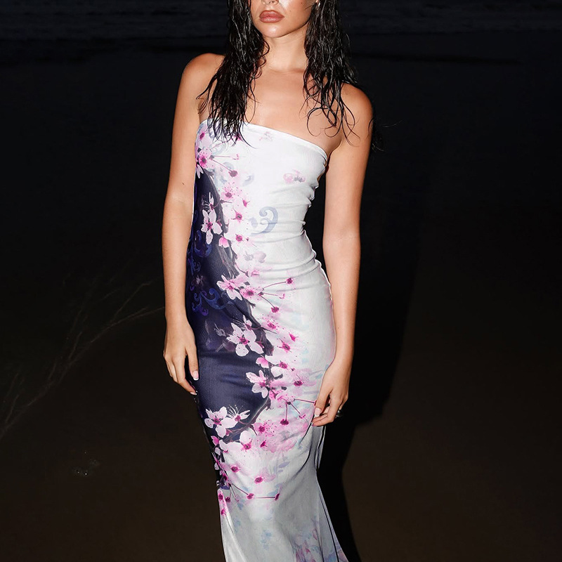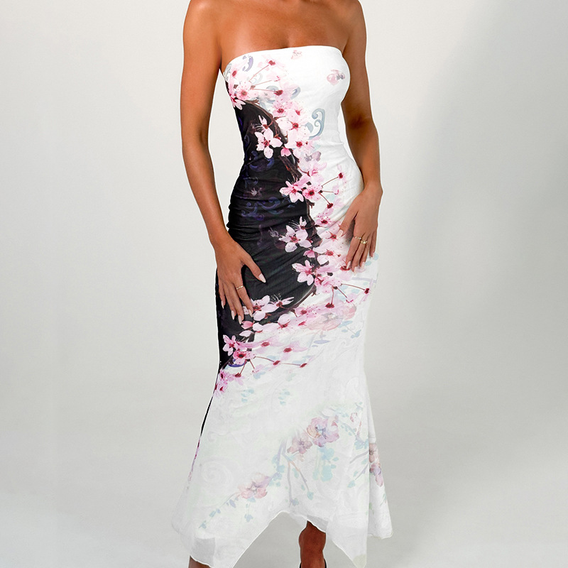 Arrival Floral Print Strapless Dress Summer Slim Fit Sexy Fishtail Dress