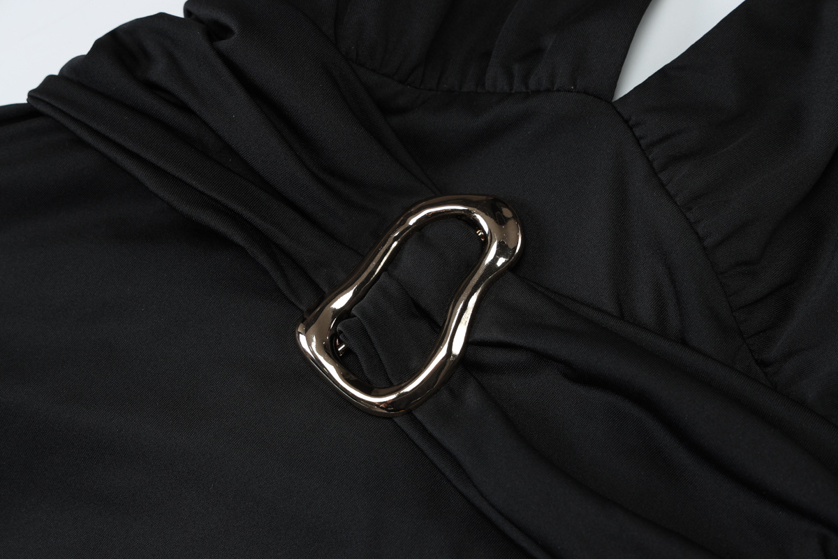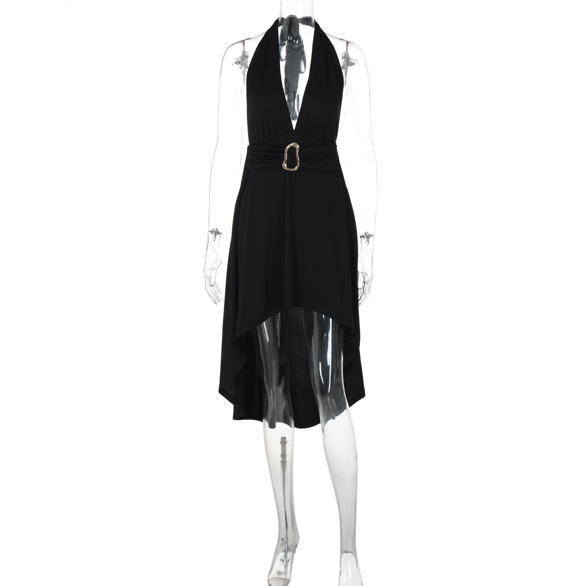 Best Seller in Women Clothing Summer Sexy V neck Lace up Mid Waist Metal Buckle Backless Dress