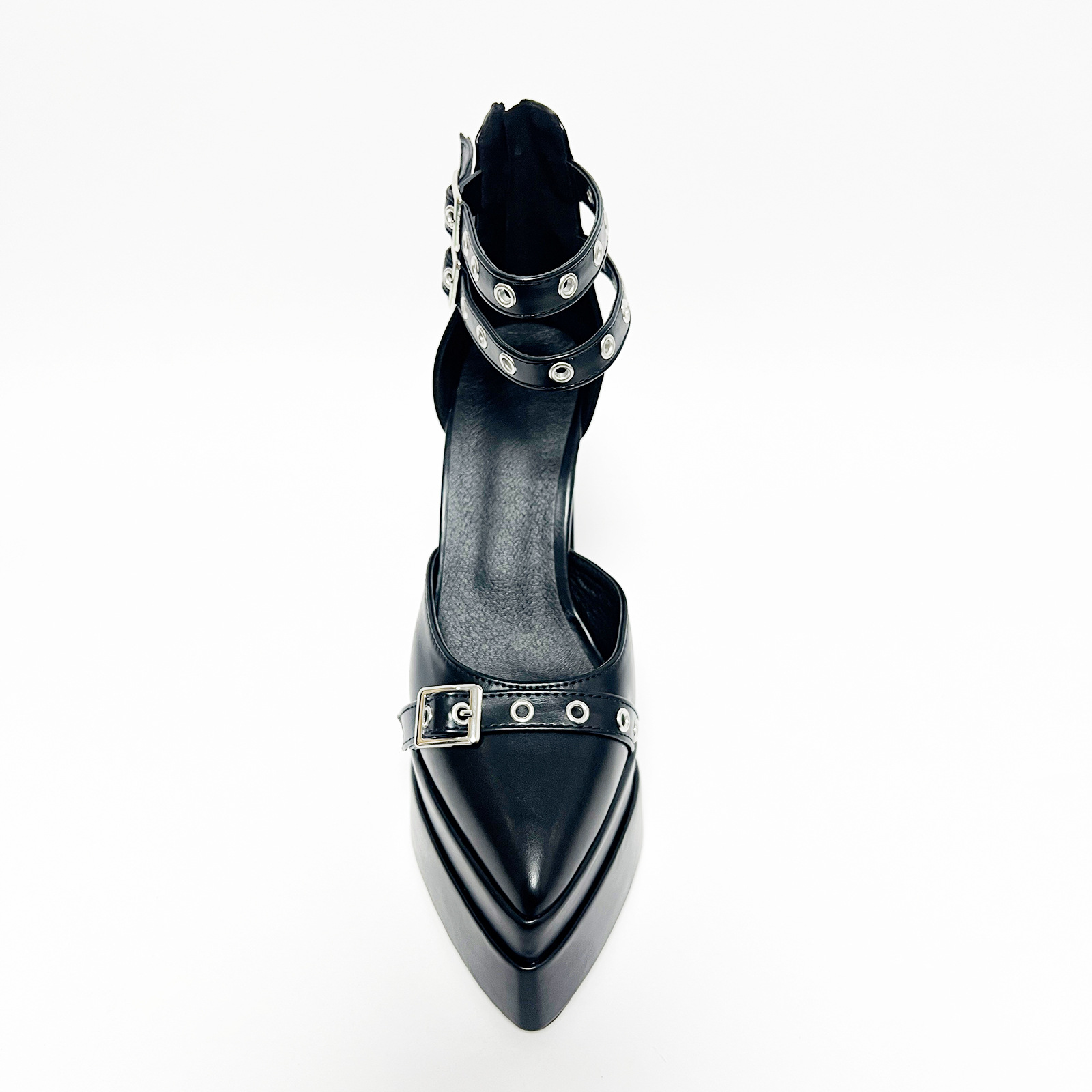 Black White Rivet Belt Buckle 15cm Double Waterproof Platform Women Shoes Heels