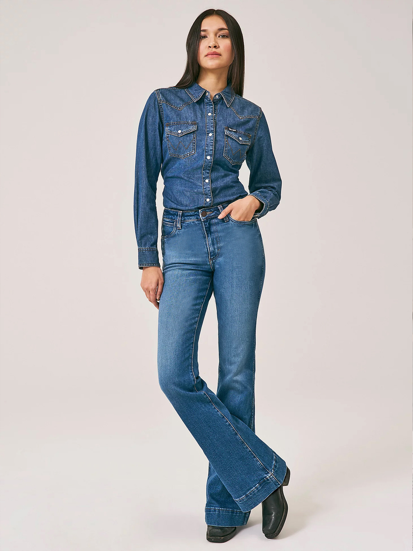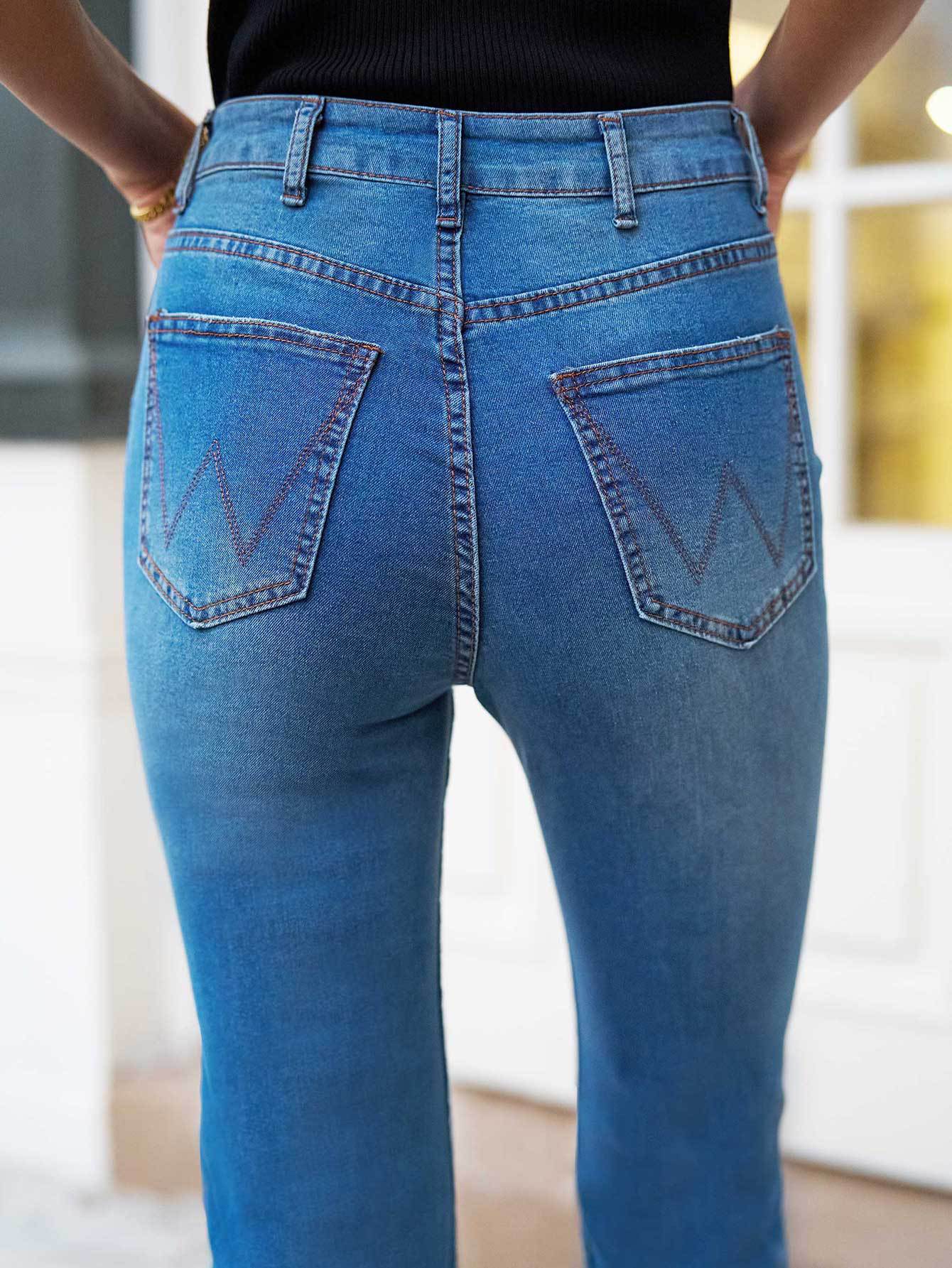 Casual Stretch Embroidery Denim Bootcut Trousers Women