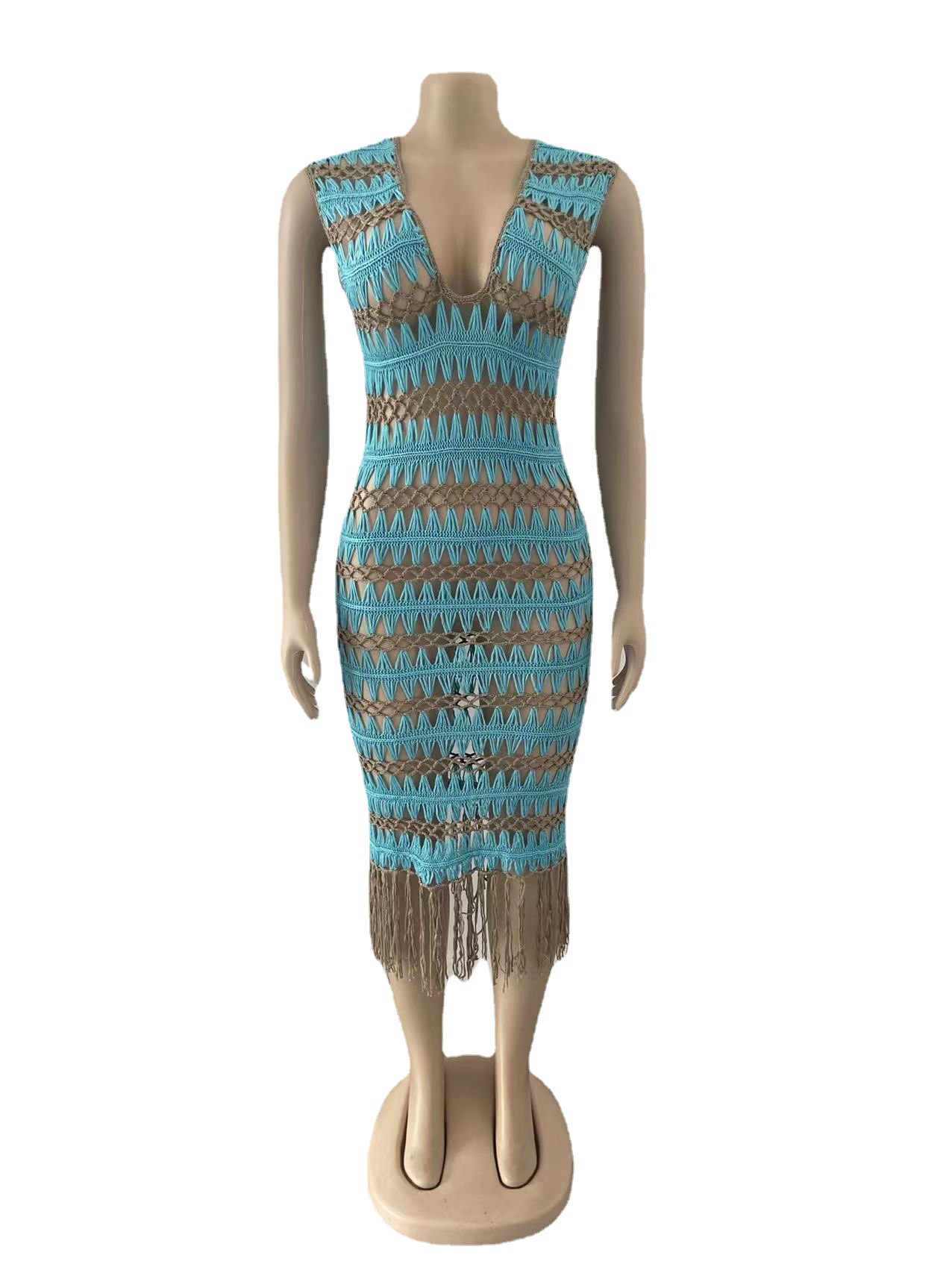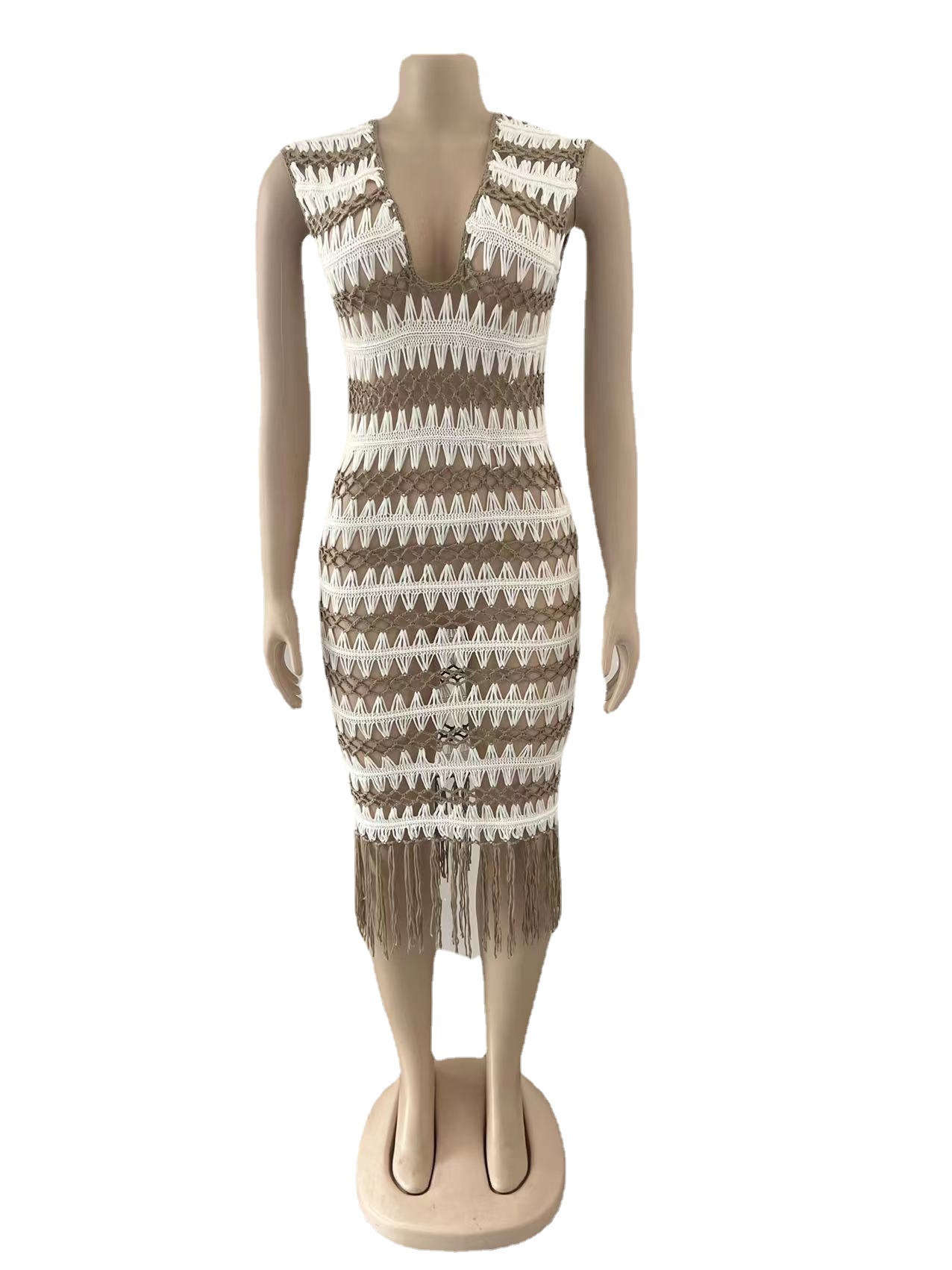 E Commerce Women Clothing Sexy Tassel Wave Crochet Woven Women Dress