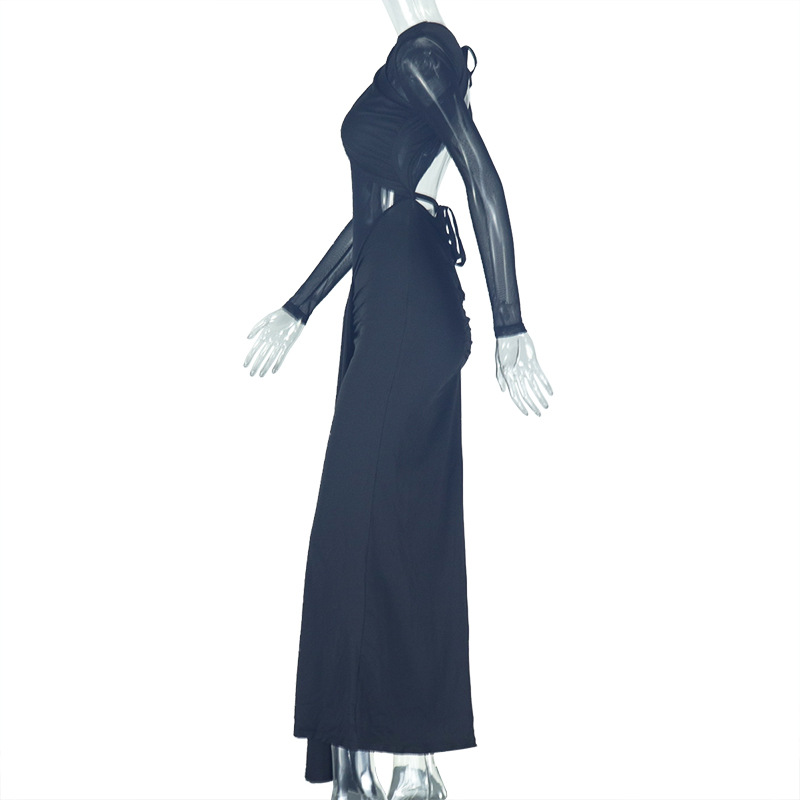 Element: Lace/Tulle/Fishnet,Backless,Cutout,Patchwork,Ruched,Tie