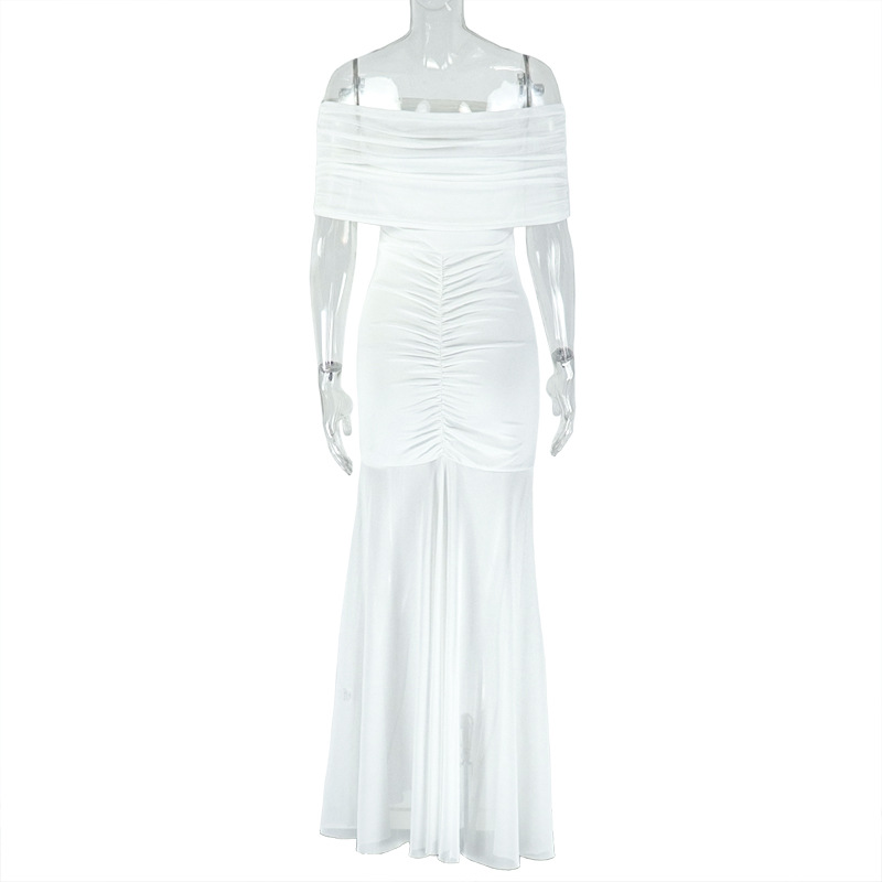 Fresh Elegant Women off Shoulder Pleated Hip Tube Top Slightly Transparent Hipster Dress