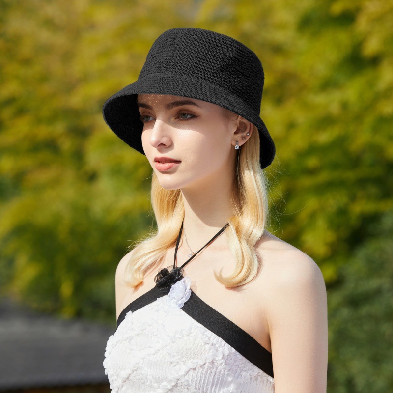 Handmade Crochet Bucket Hat Summer Korean Face Looking Small Breathable Bucket Hat Short Brim Bucket Hat
