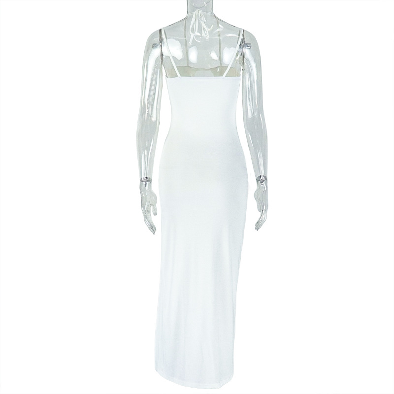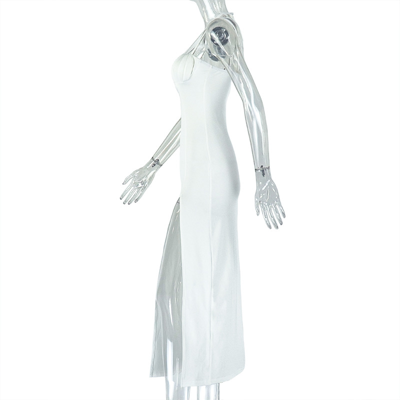 Hollow Out Cutout Solid Color Sheath Split Asymmetric Slim Fit Backless Halter Length Dress Women