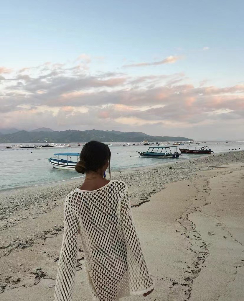 Knitted Hollow Out Cutout Sexy Sun Protection Shirt Bikini Cover-up Women Swimsuit Blouse Vacation Beach Outer Pullover