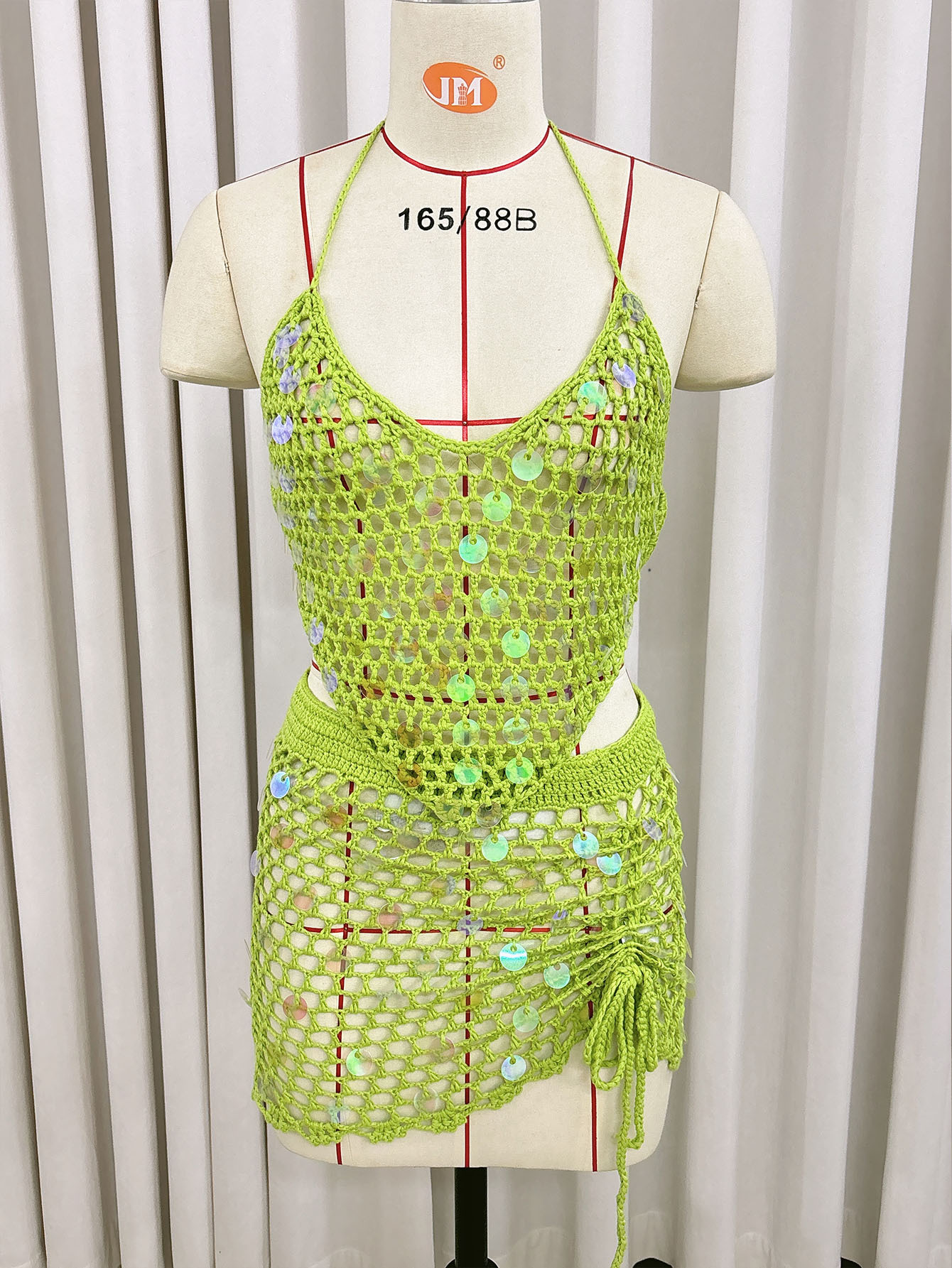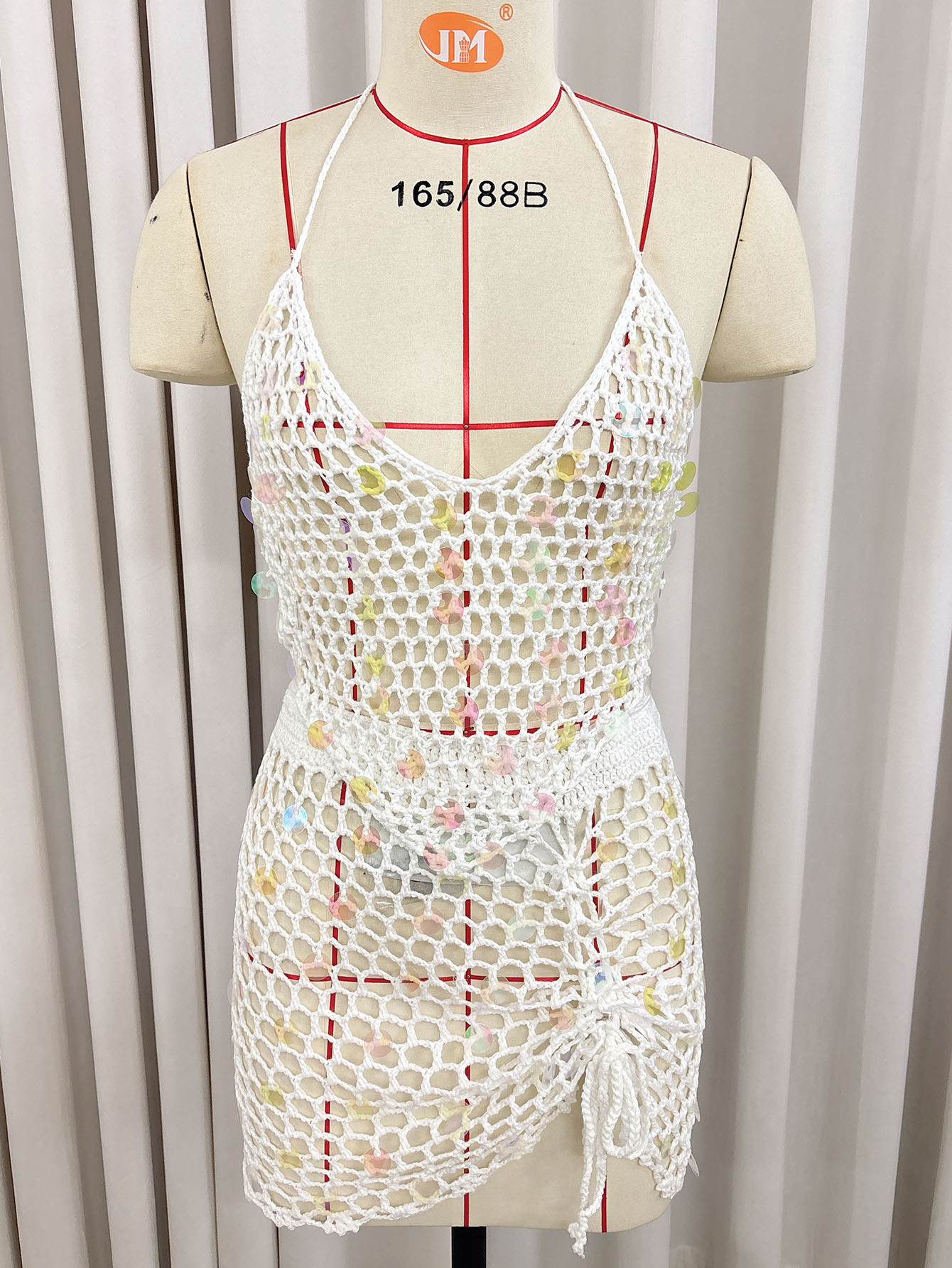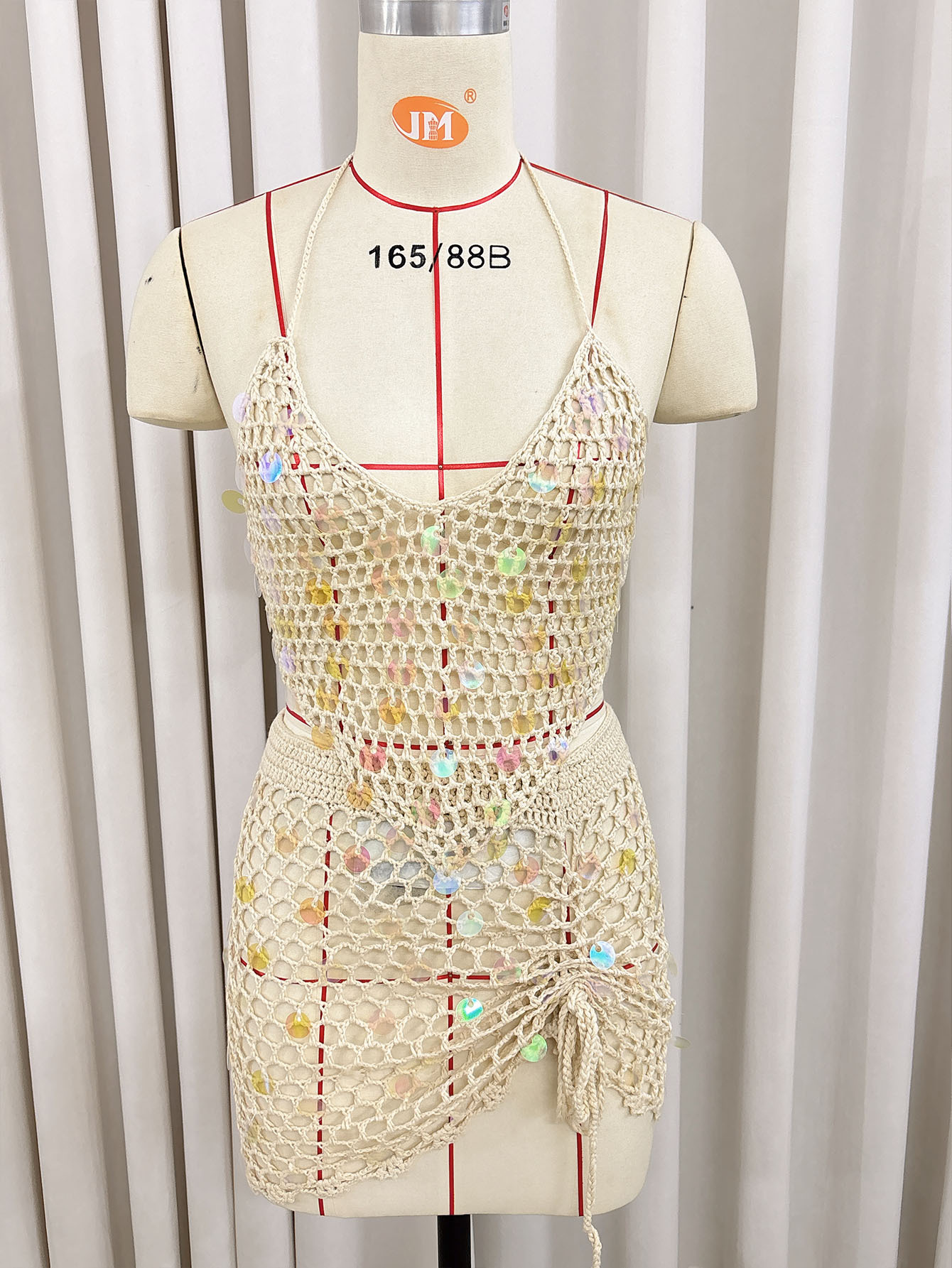 Ladies Vacation Beach Blouse Women Clothing Sequin Stitching Pure Hand Crocheting Irregular Asymmetric Camisole Sexy Bikini Top