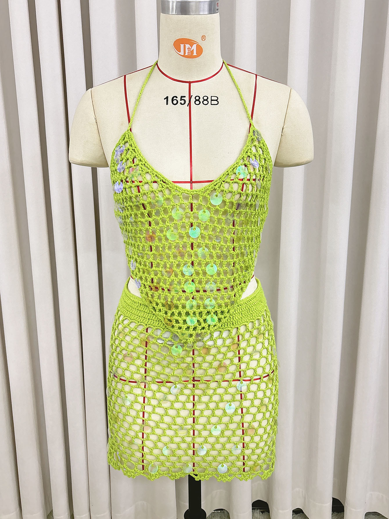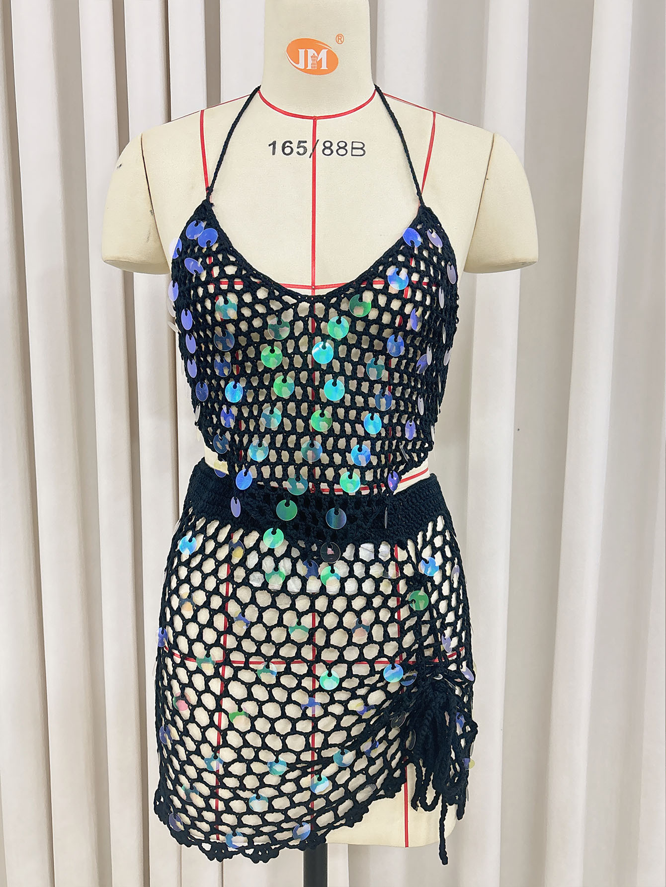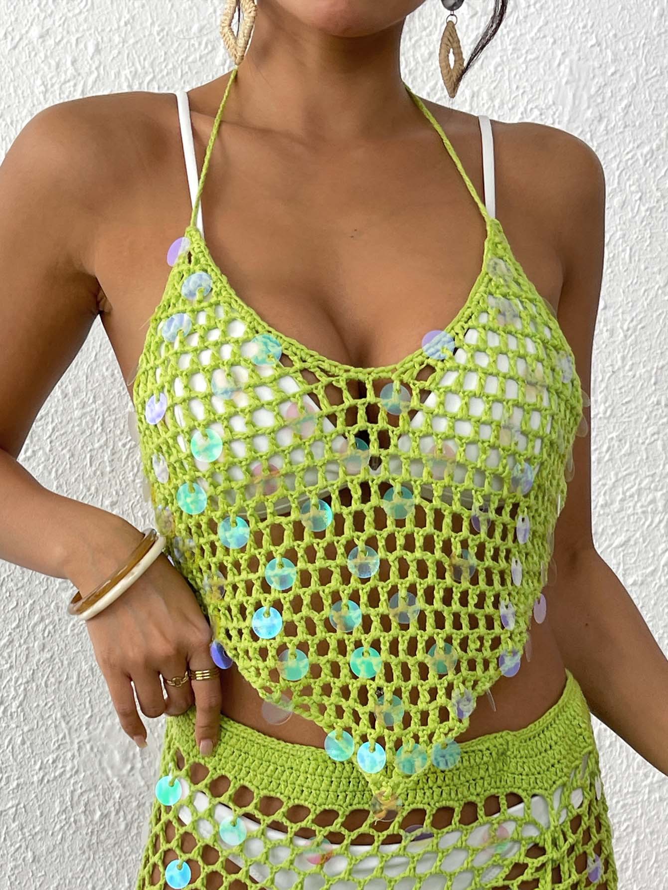 Ladies Vacation Beach Blouse Women Clothing Sequin Stitching Pure Hand Crocheting Irregular Asymmetric Camisole Sexy Bikini Top