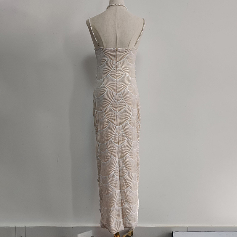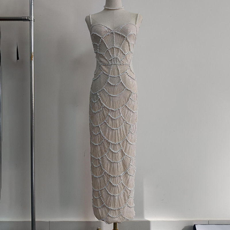 Light Luxury High Grade Dress Summer Beaded Sequ Cropped Outfit Hip Spaghetti Straps Dress Women