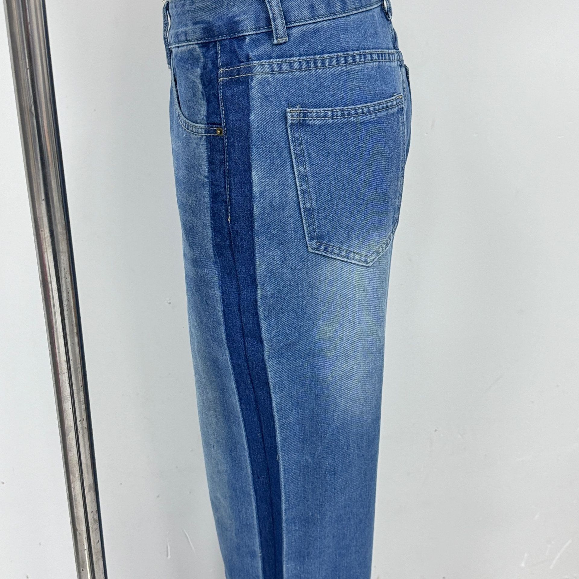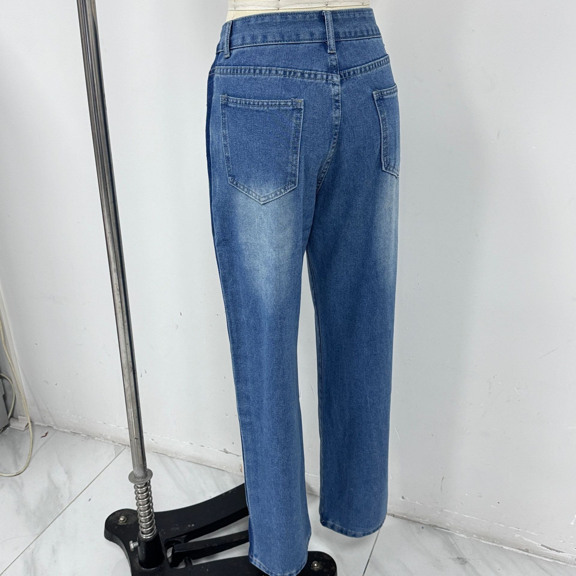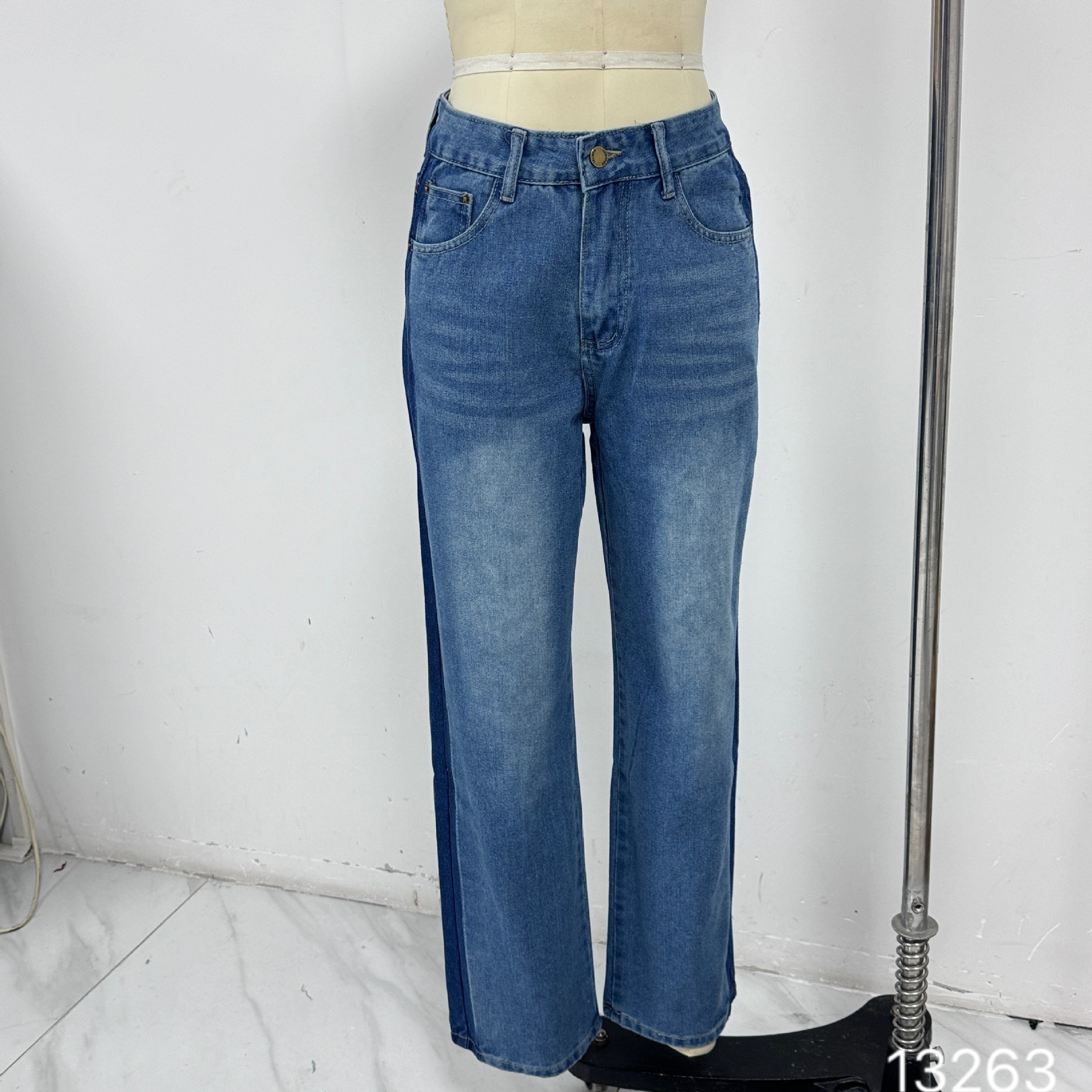 Matching Washed Straight Jeans Contrast Color High Waist Casual Loose Wide Leg Pants Women