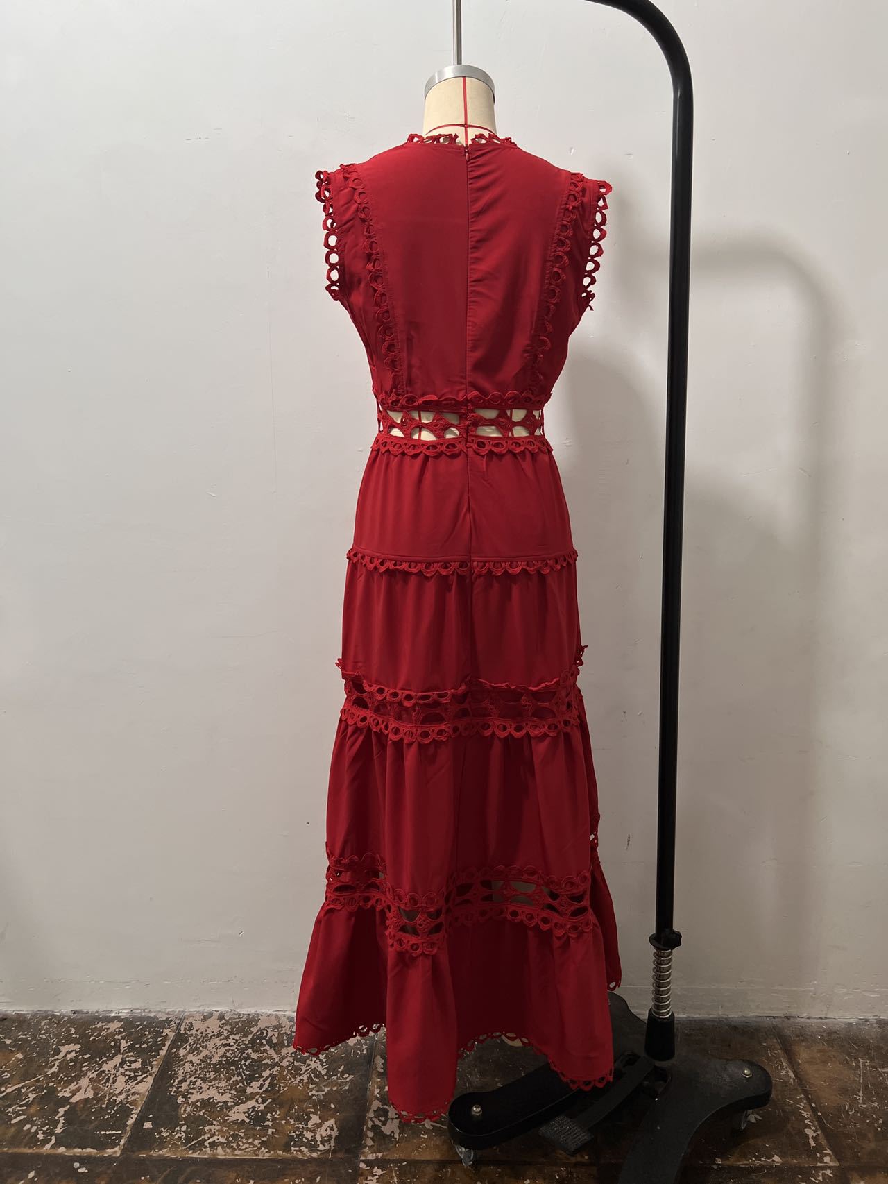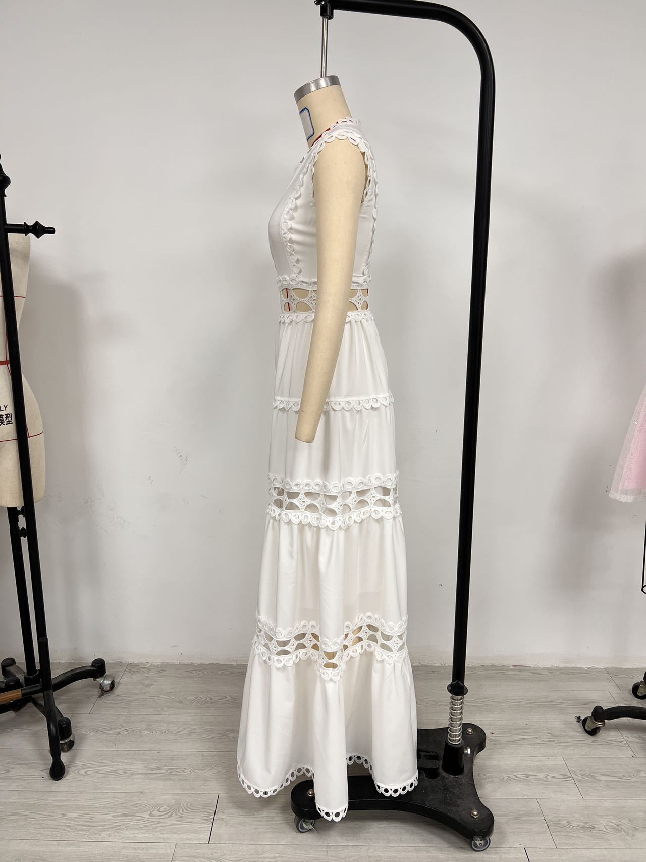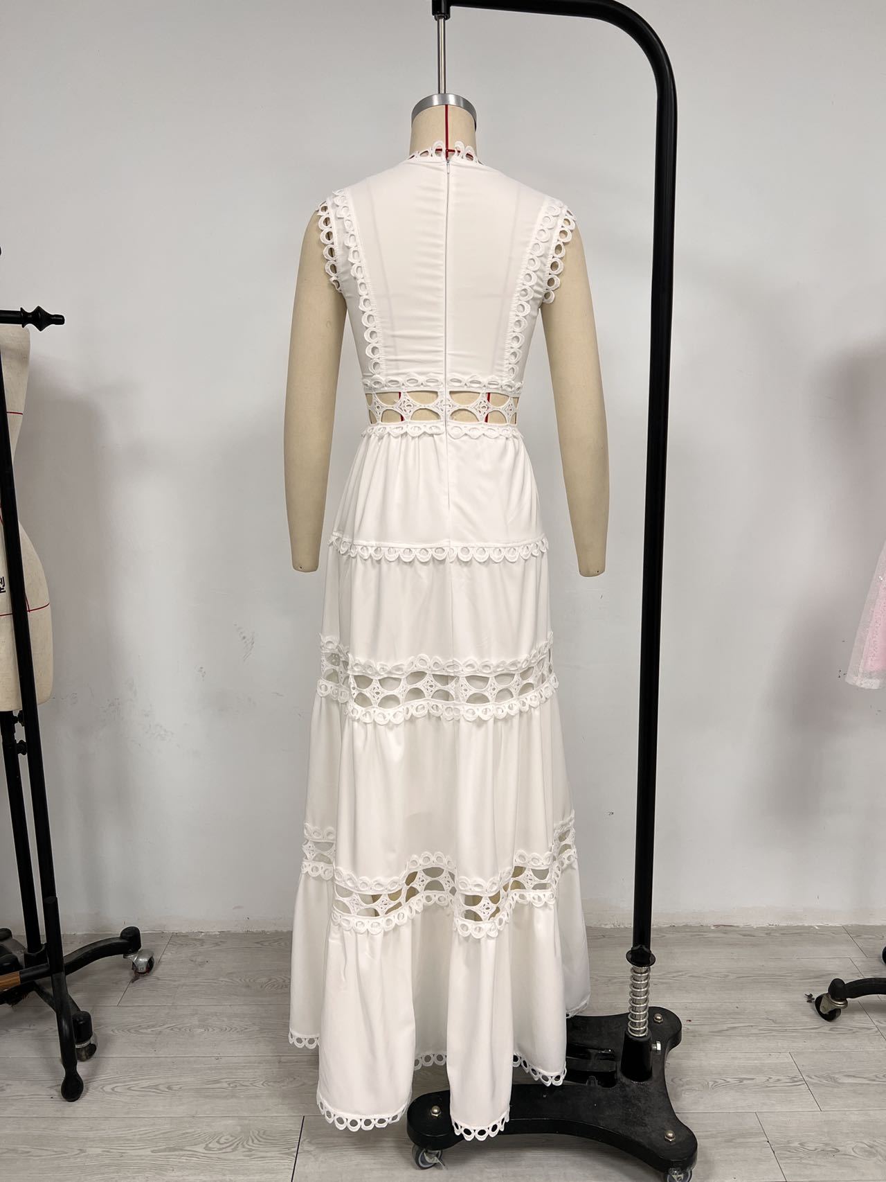 Palace Hollow Out Cutout out Embroidered V neck Slimming Long Sleeveless Dress