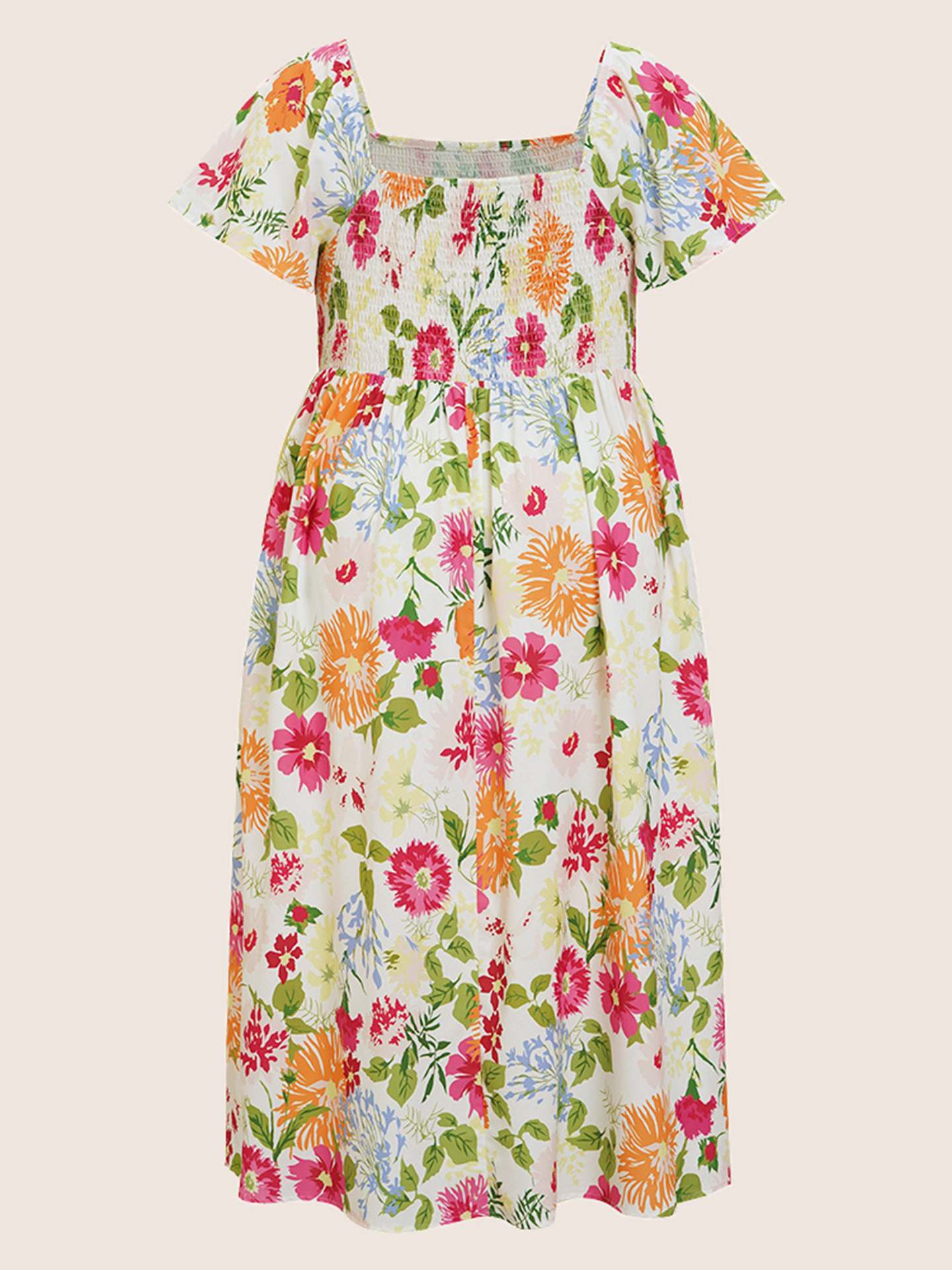 Plus Size Summer Dress Square Collar Loose Maxi Dress High Waist Print Short Sleeve Dress