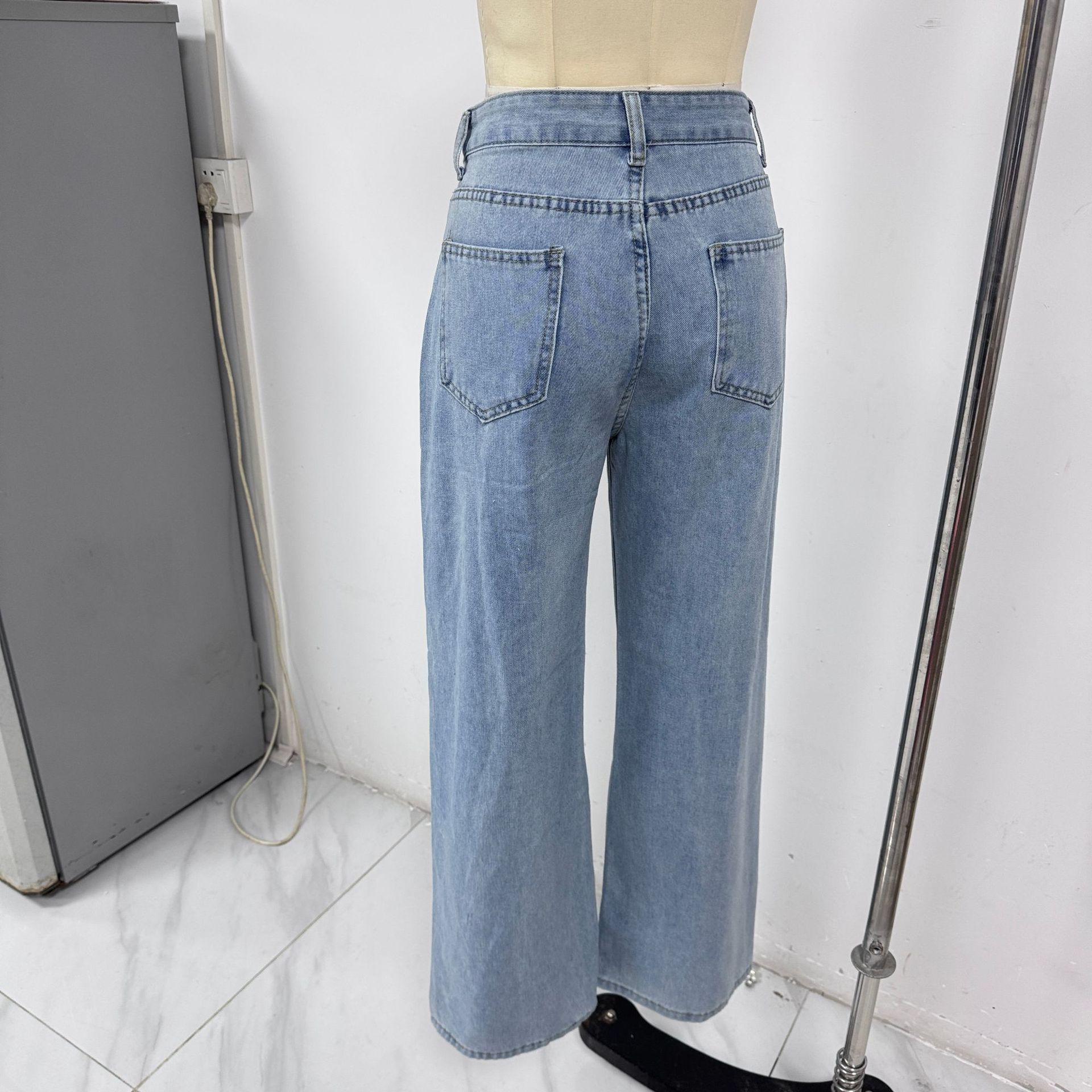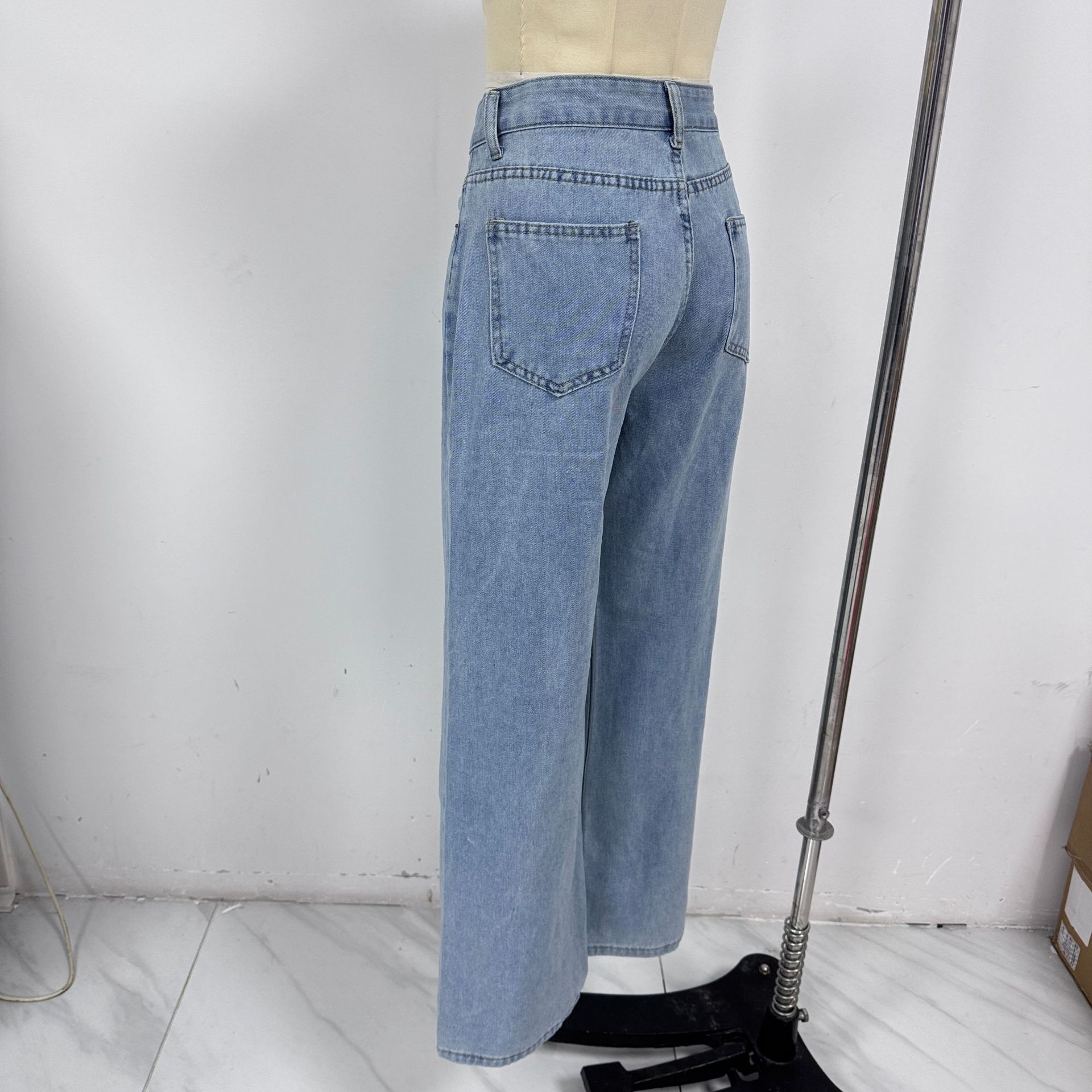 Retro High Waist Slimming Straight Casual Wide Leg Loose Washed Design Jeans
