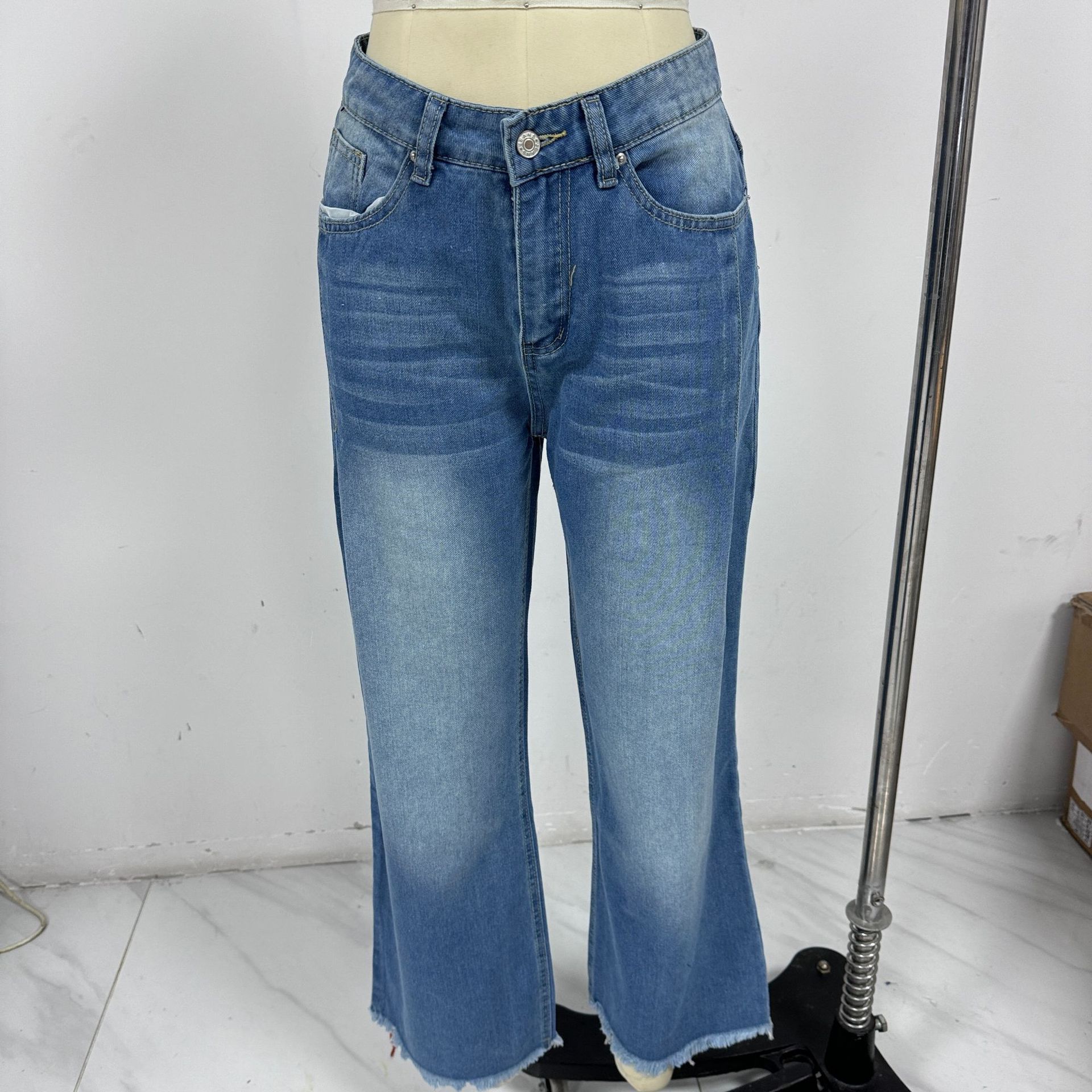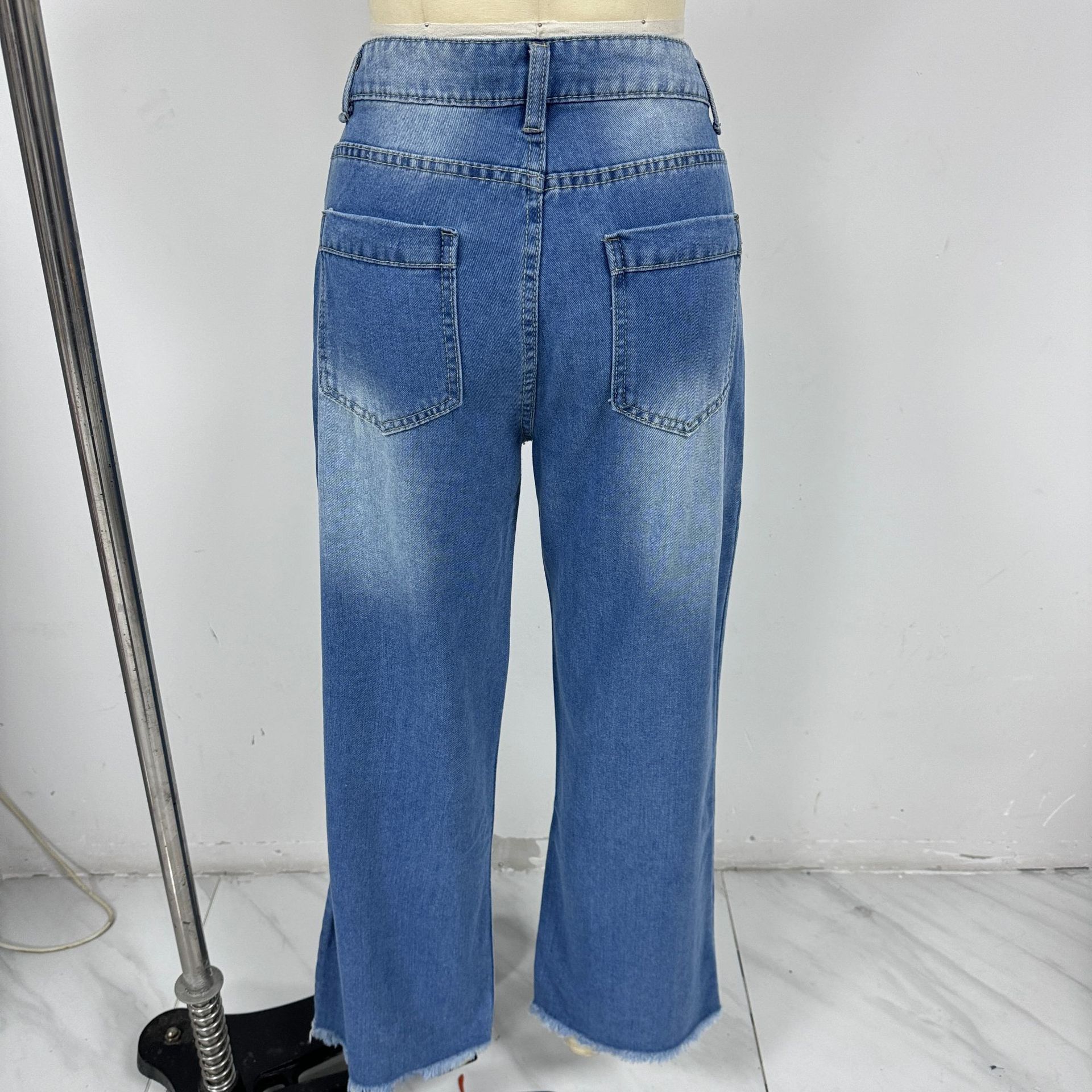 Retro Washed High Waist Drooping Straight Wide Leg Denim Trousers