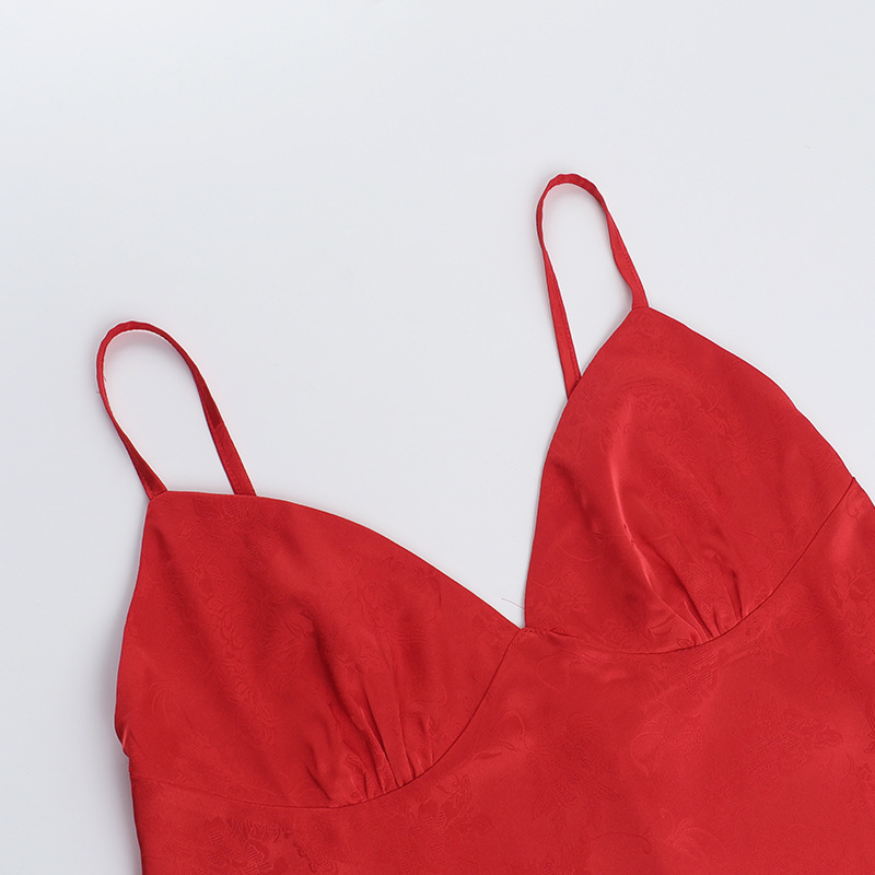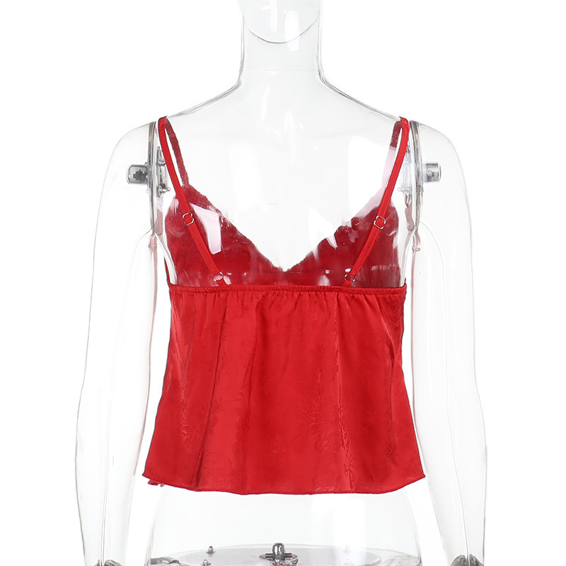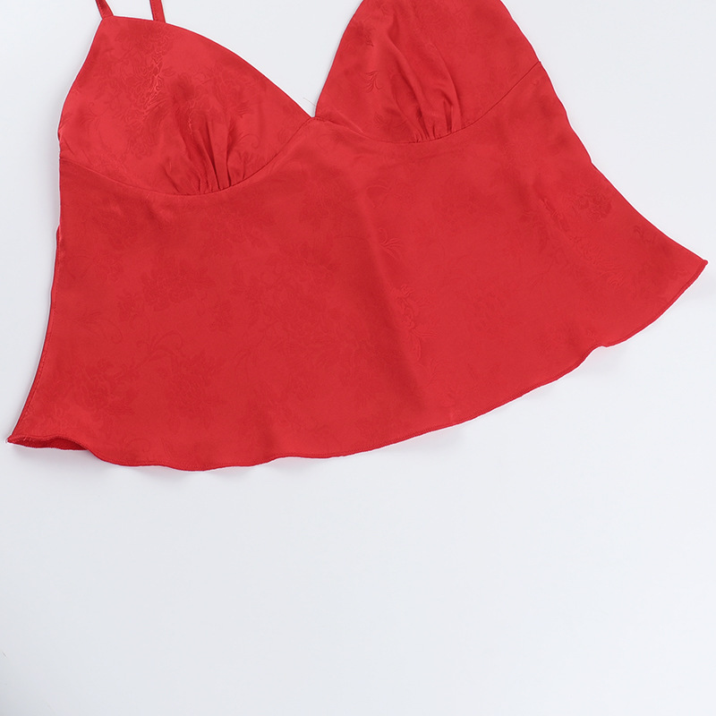 Satin Jacquard Sling Summer V neck Loose Top Women