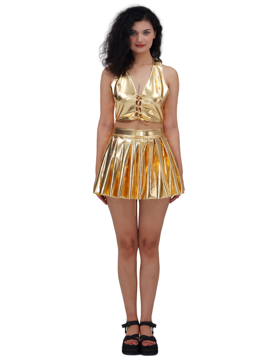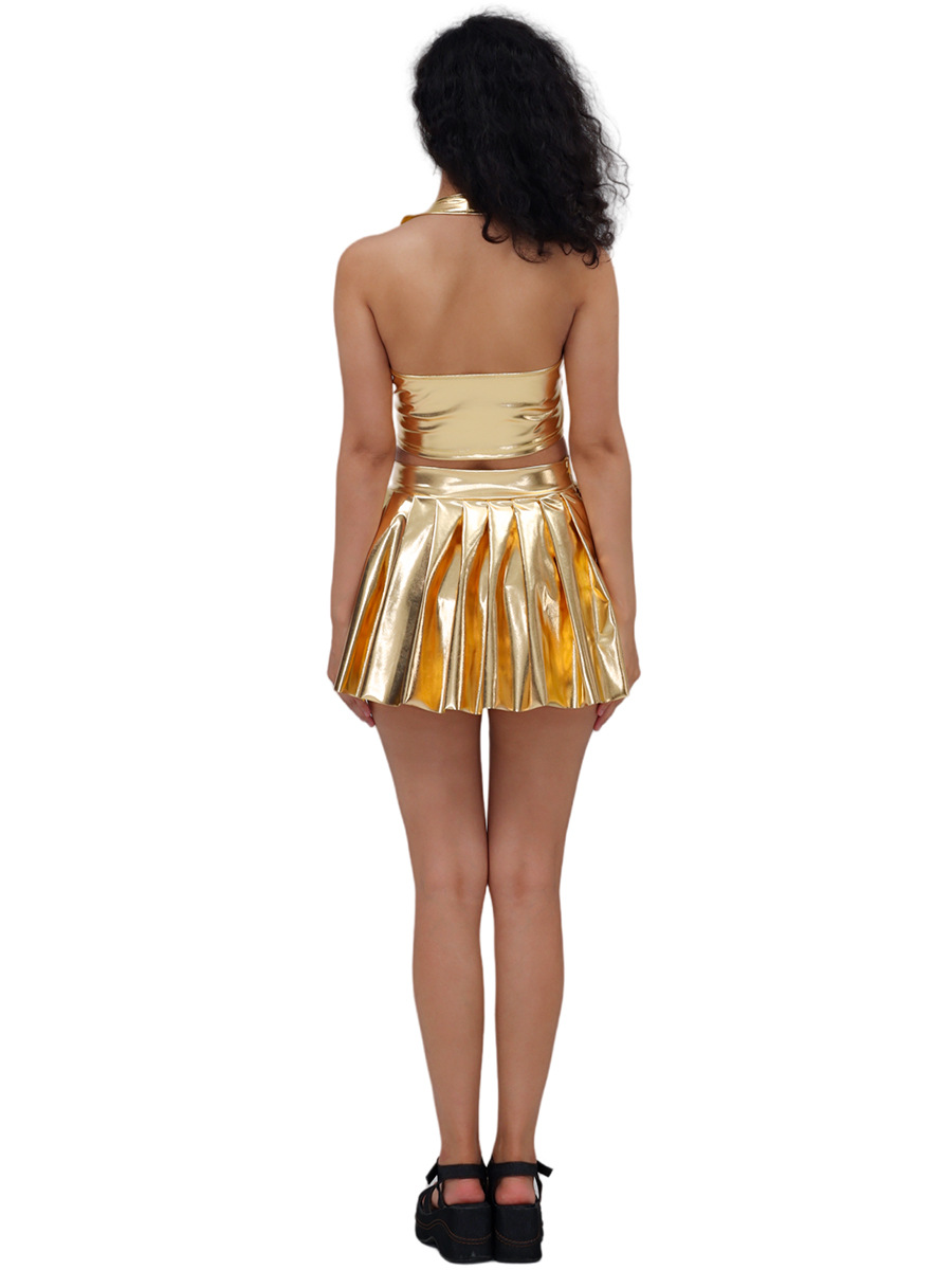 Sexy Patent Leather Women Clothing Metallic Lace up Halterneck Vest Party