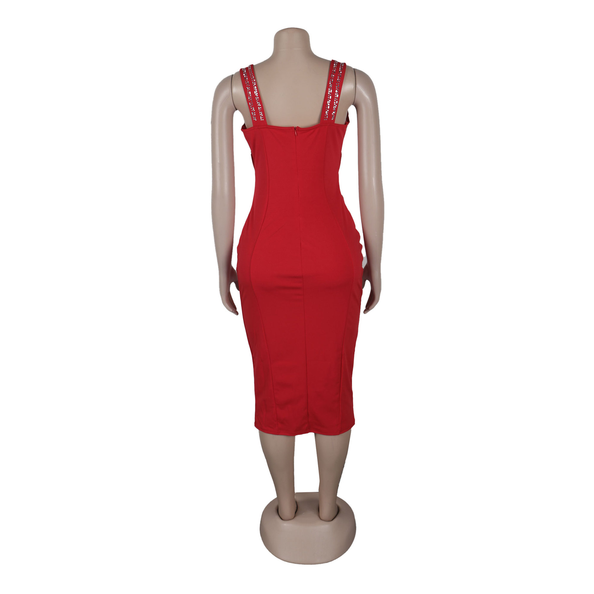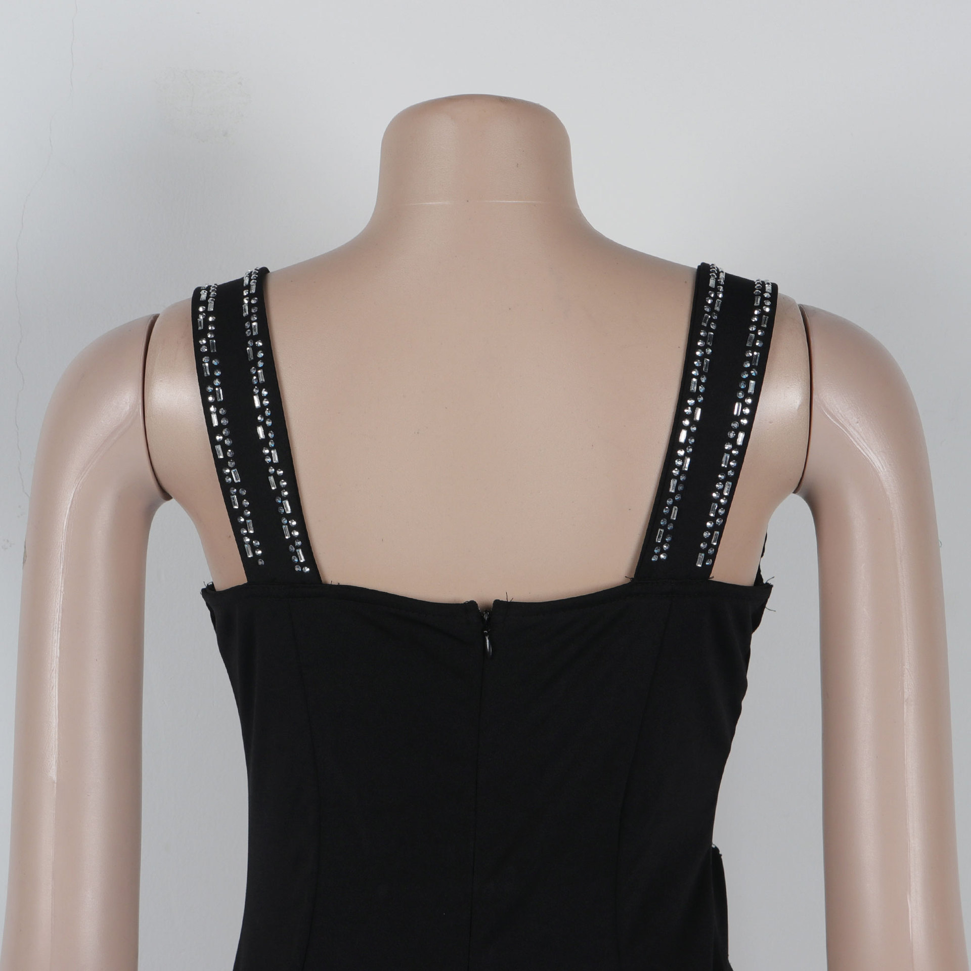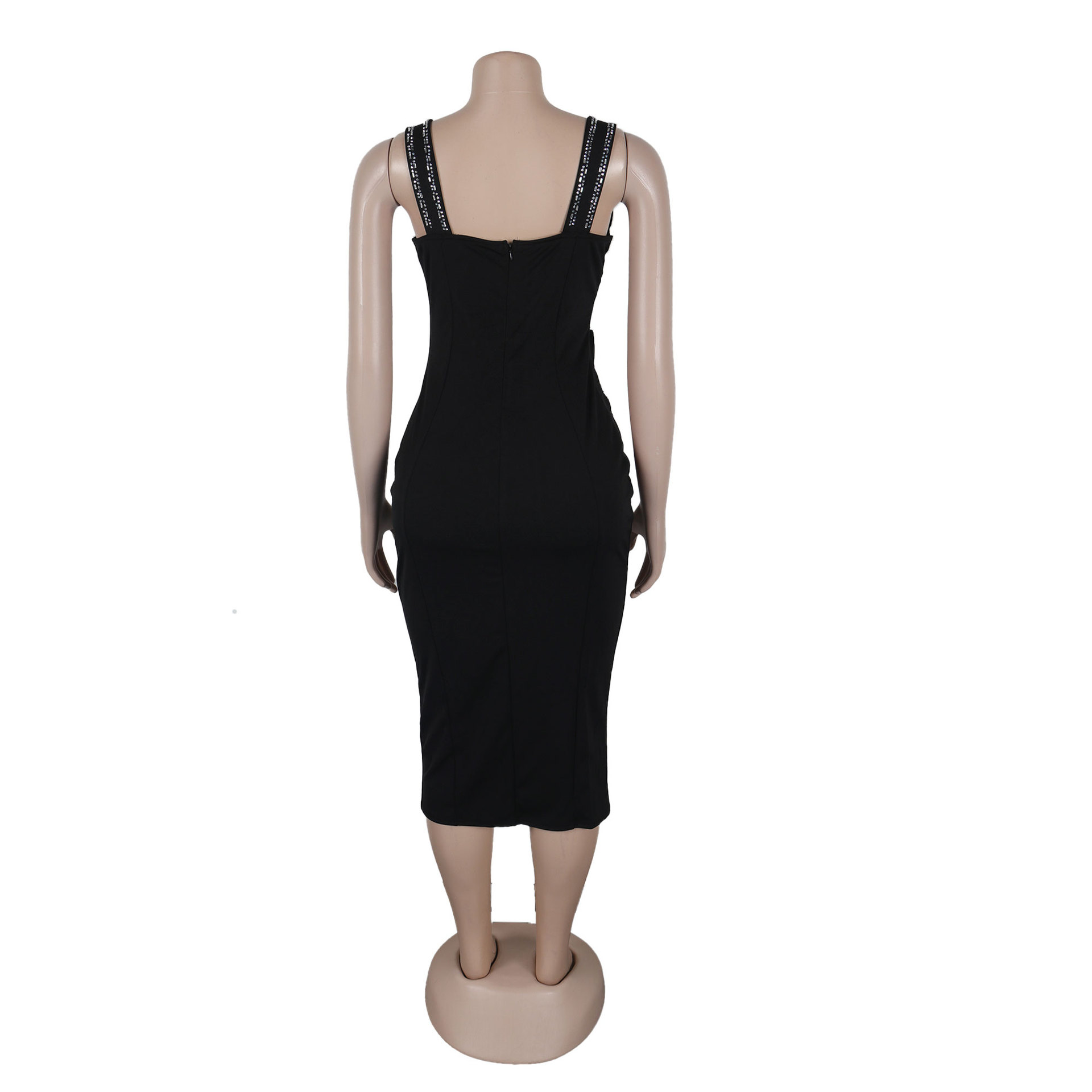 Sexy Rhinestone Stitching Hollow Out Cutout Out See Through Hip Stretch Slim Strap Dress