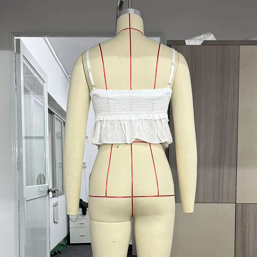 Sexy Solid Color Sling Top Pleated Drawstring Lace Irregular Asymmetric Short Sexy Top