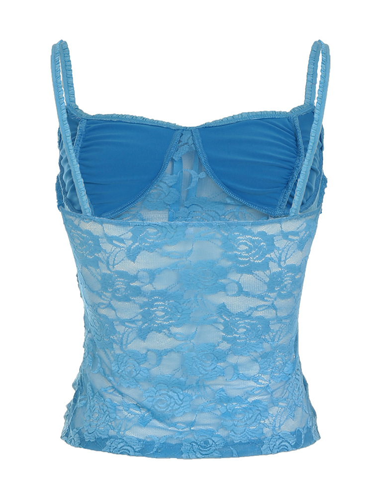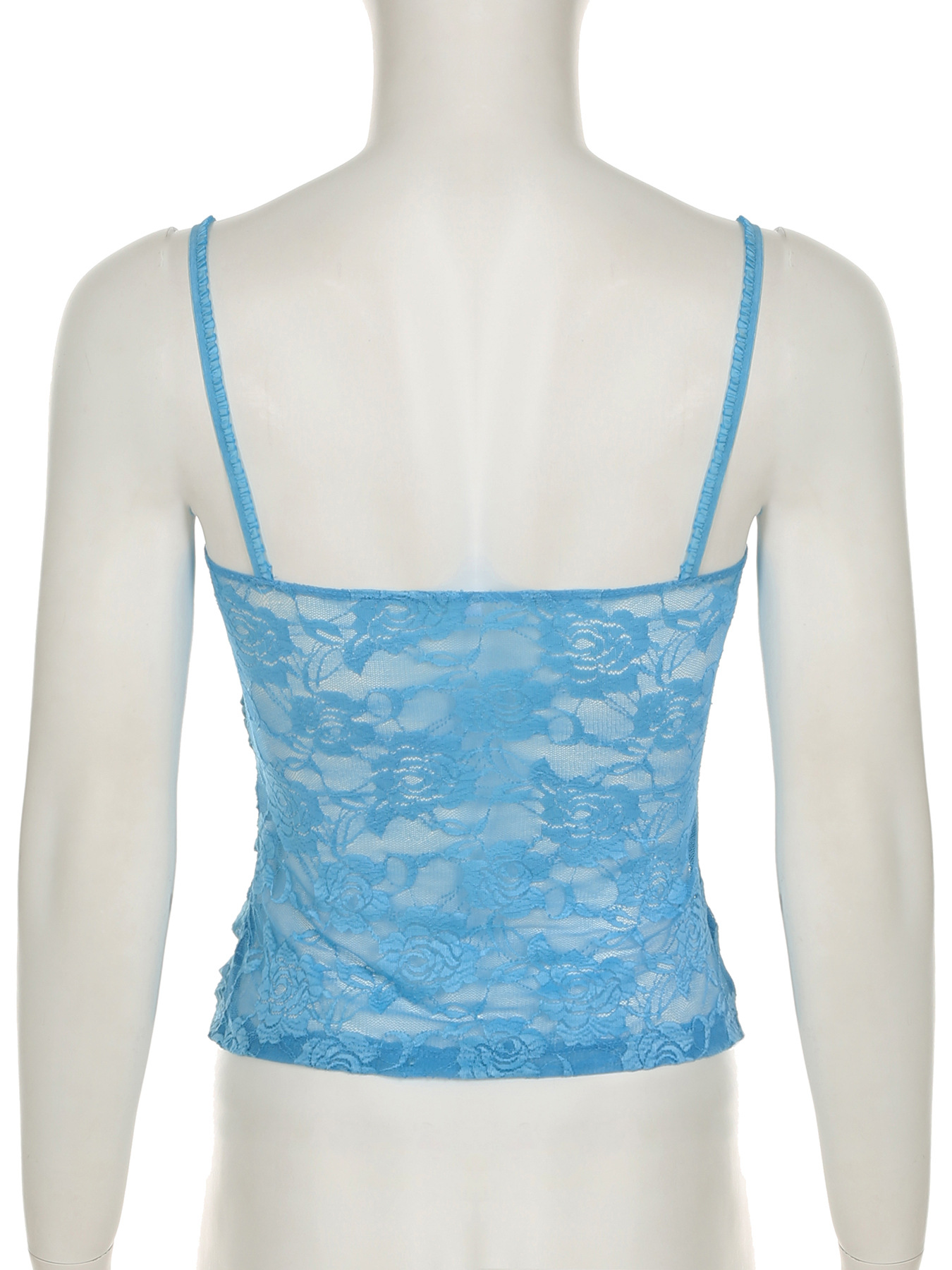 Sexy Sweet Spicy Rose Red Lace Bow Tied V neck Waist Trimming Spaghetti Straps Small Vest Sexy Backless Top
