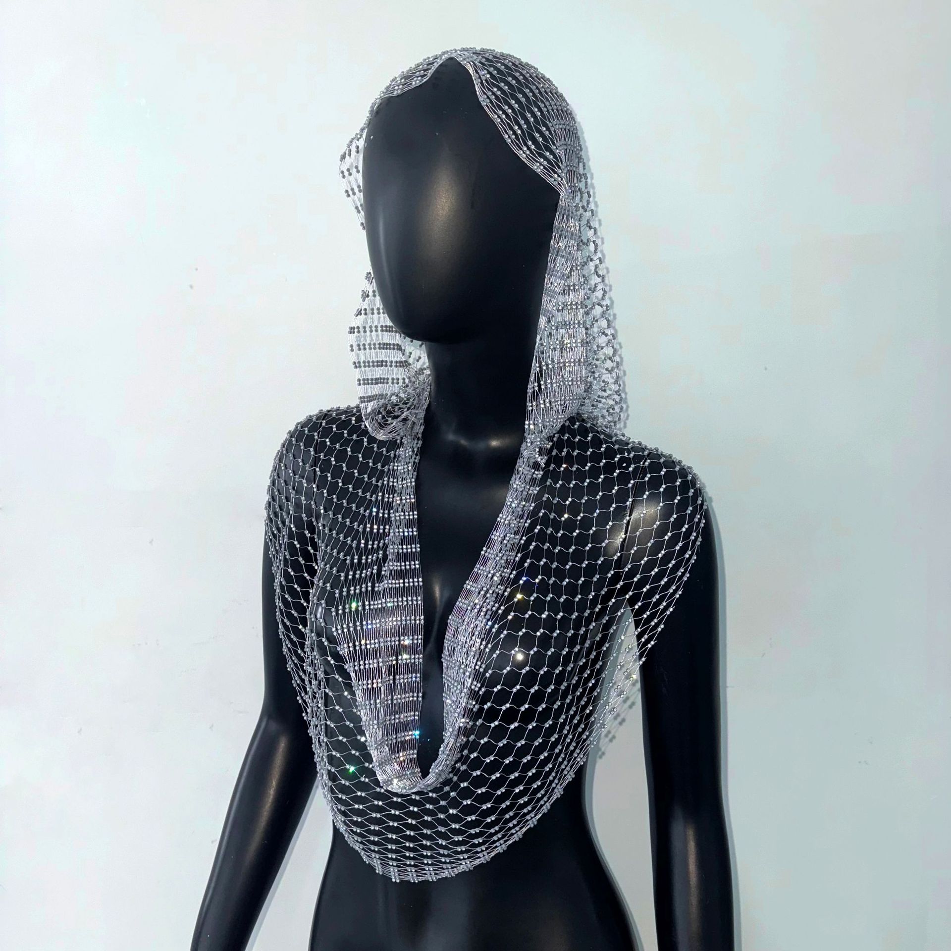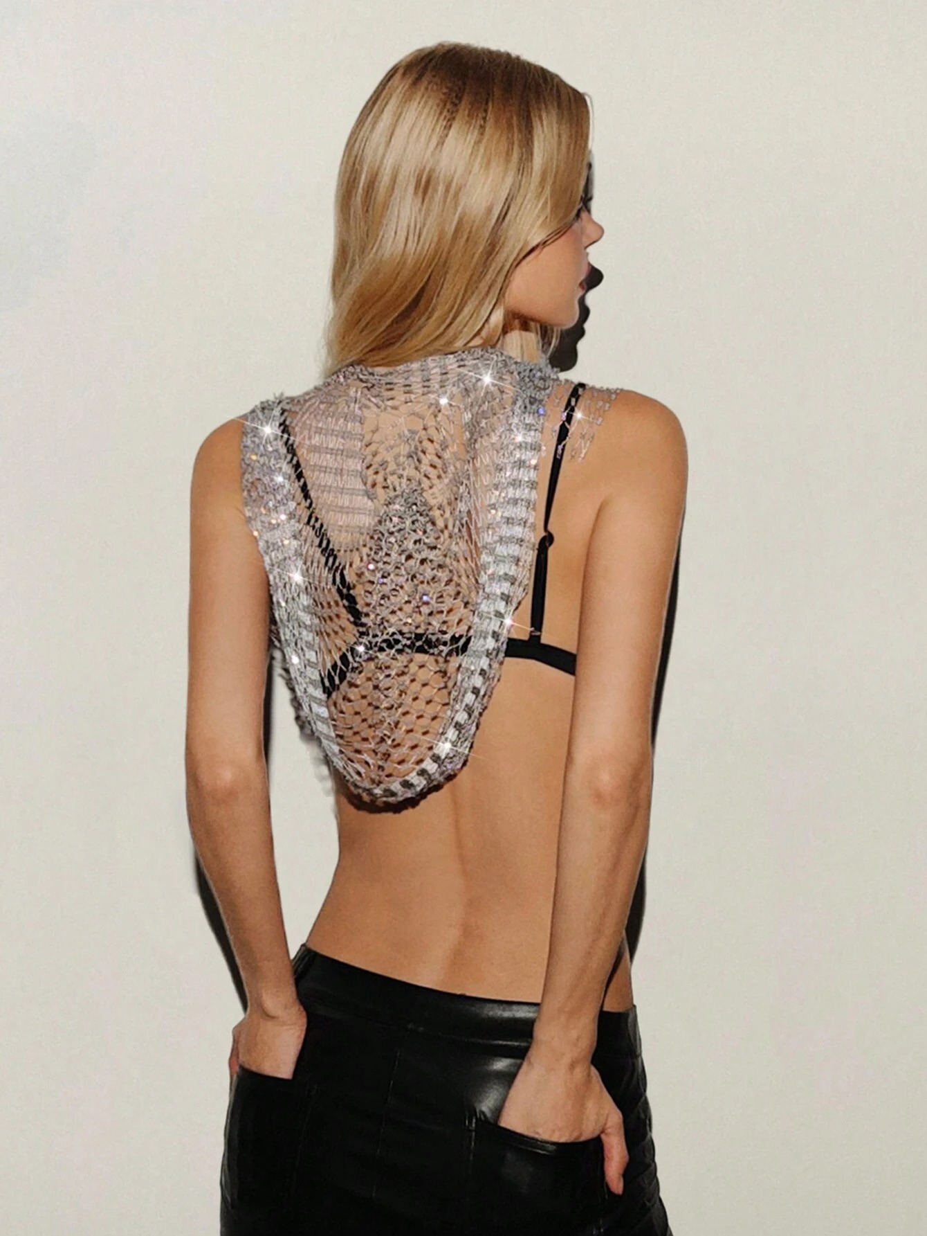 Sexy Top Sexy Fishnet Rhinestone Camisole Personalized Hooded Top Music Festival Women