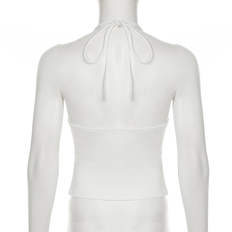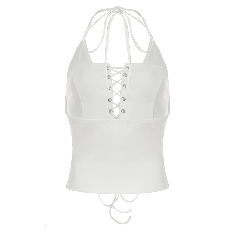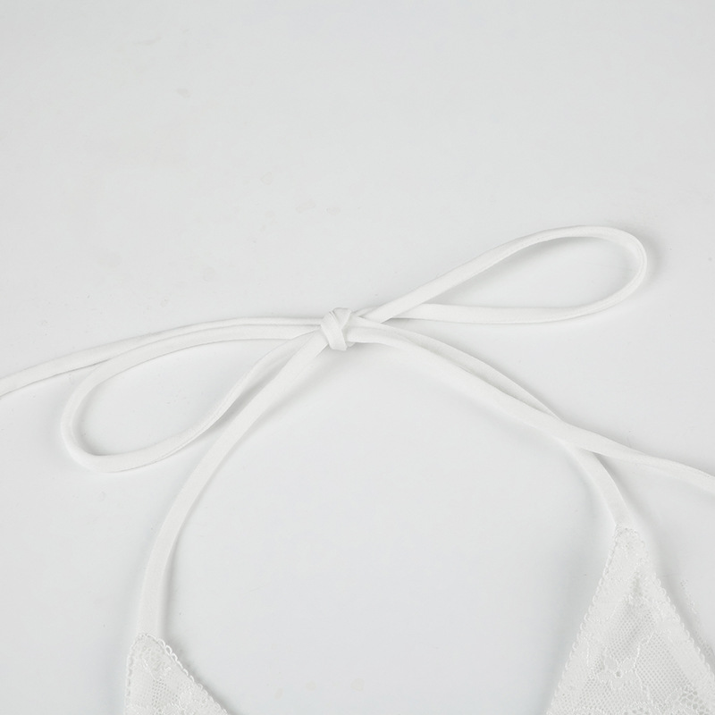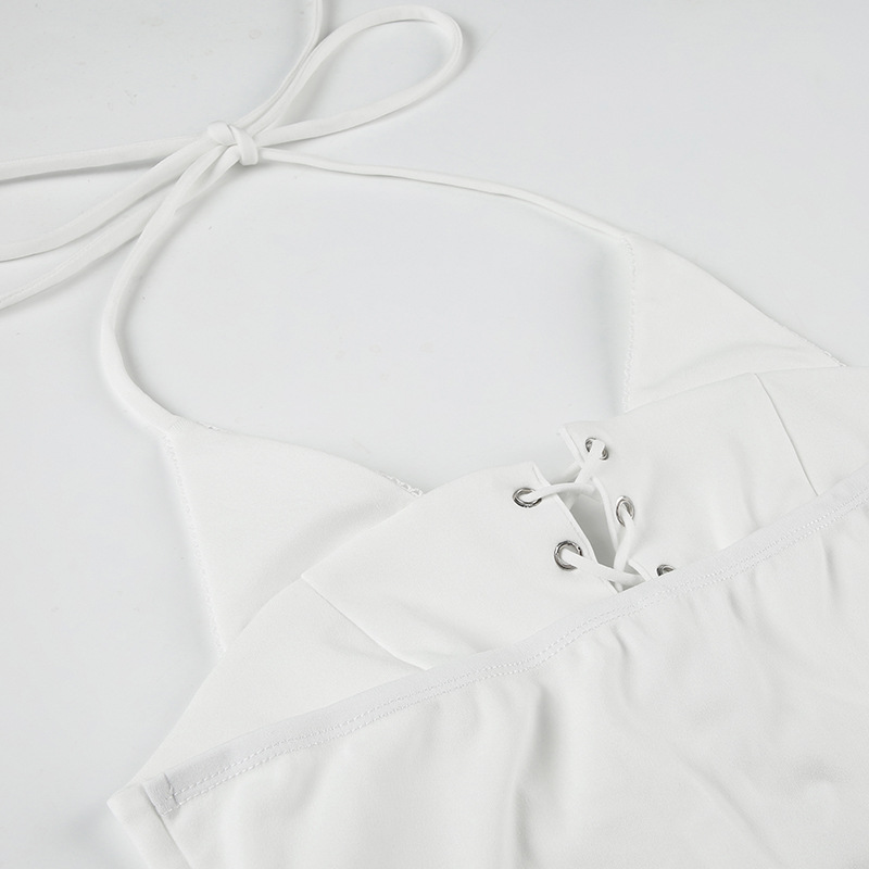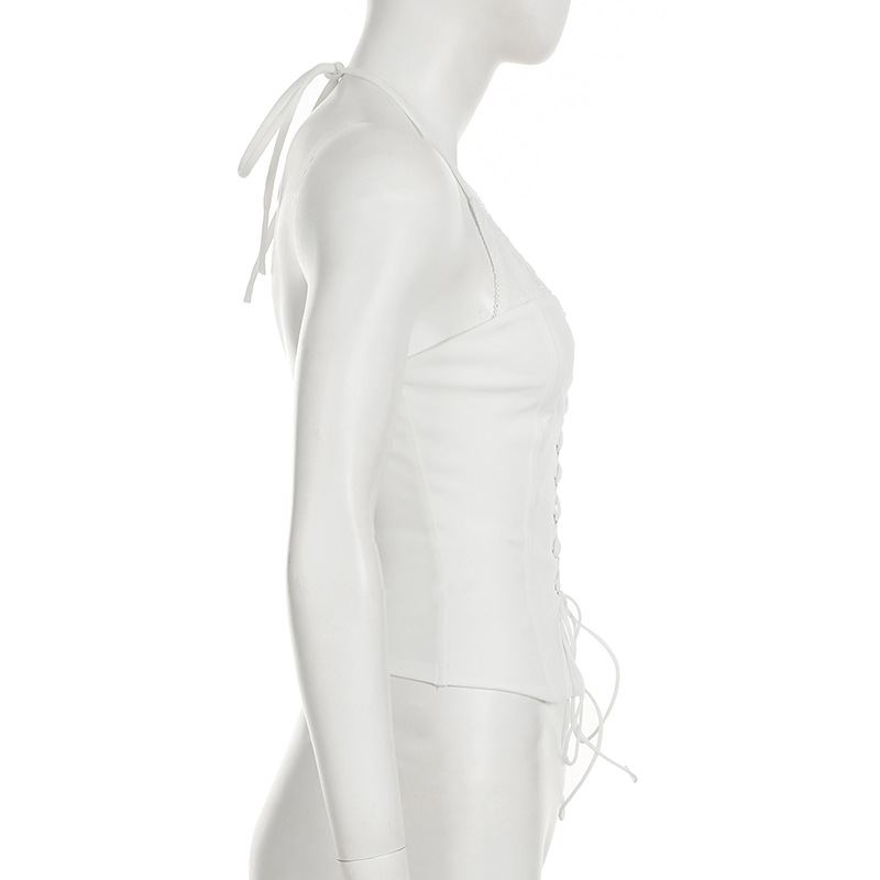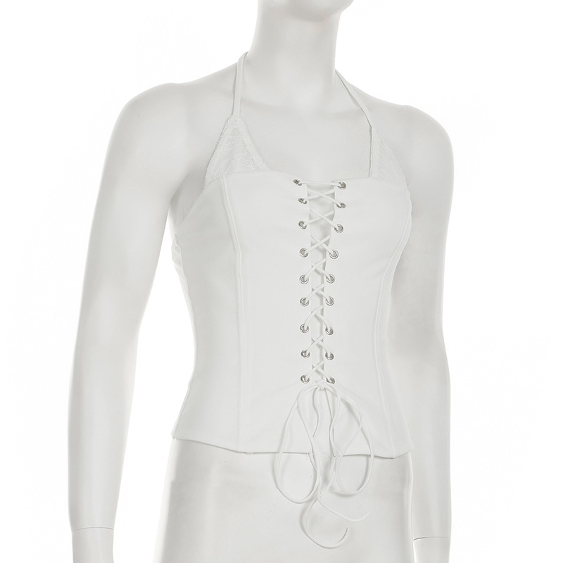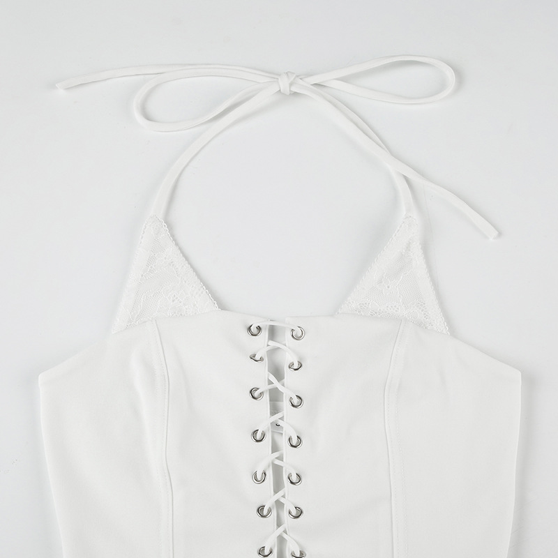 Sexy Women Halter Lace Stitching Faux Two Piece Waist Hollow Out Cutout out Strap Bra Camisole