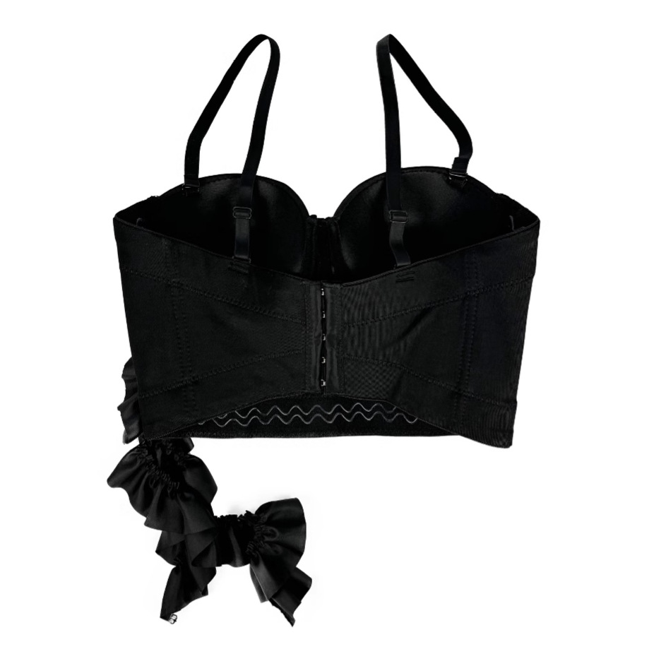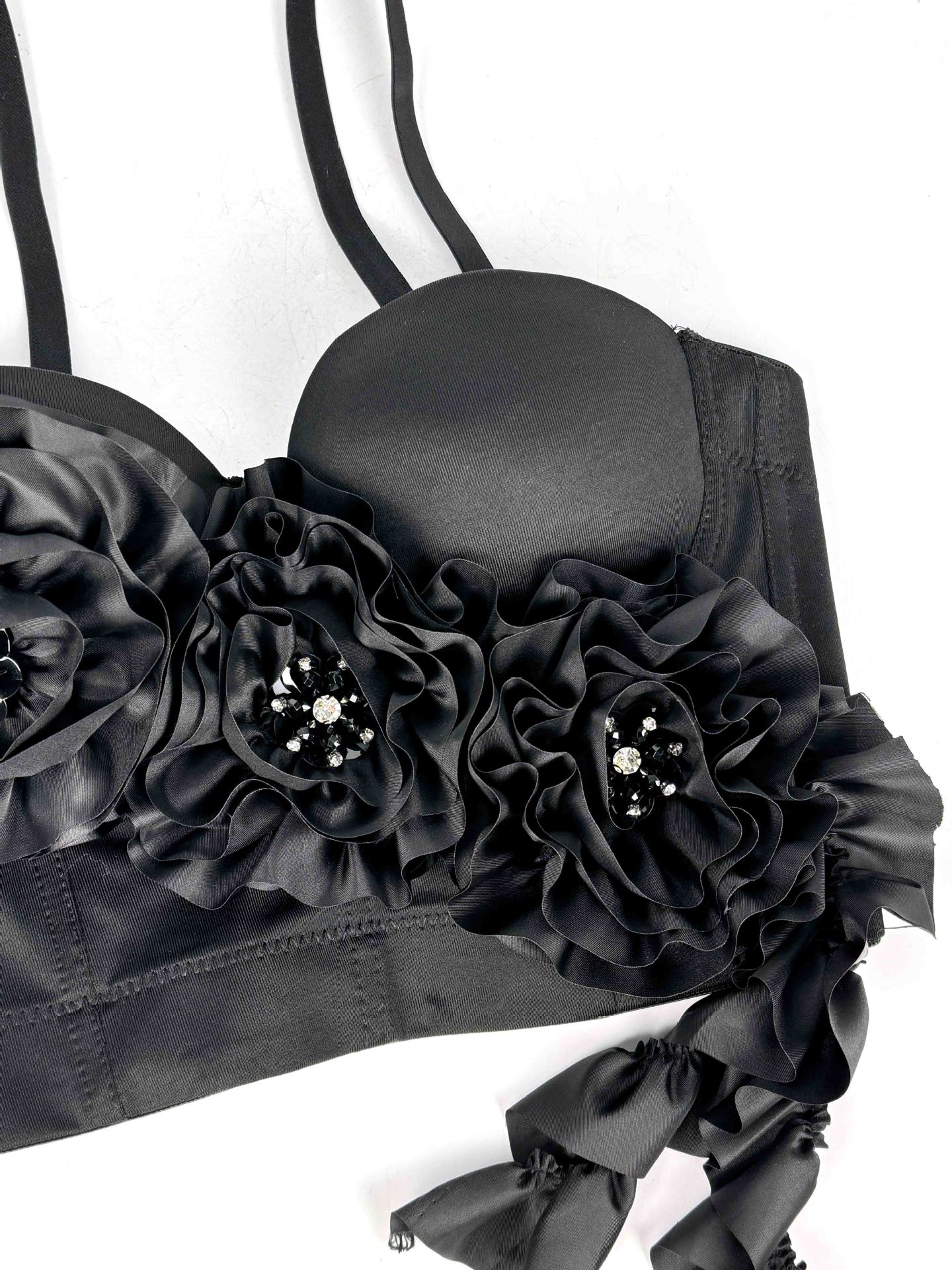 Element: 3D Decoration,Asymmetric,Boning,Ruffle,Rhinestone,hook closure