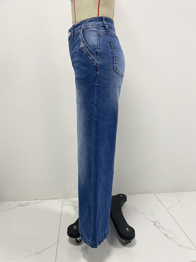 Spring Retro Wide Leg Jeans Women Embroidered Elastic Straight Pants Casual Trousers