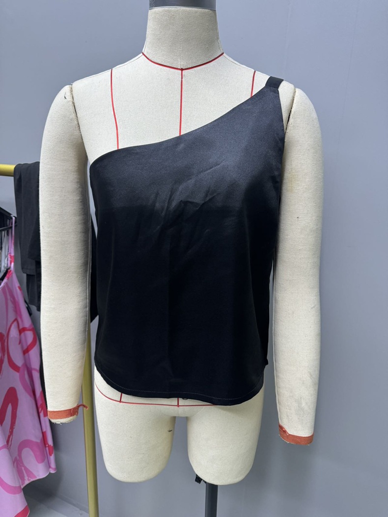 Spring Summer Office Loose Casual Slant Shoulder Satin Strap for Women