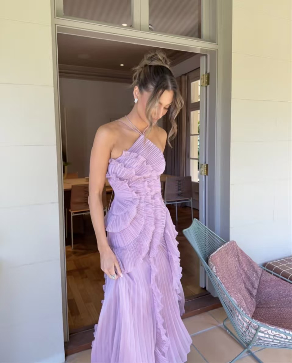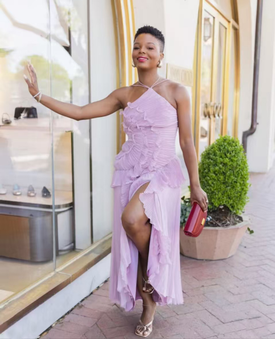 Spring Summer Pleated Ruffled Halter Backless a Swing Chiffon Elegant Dress