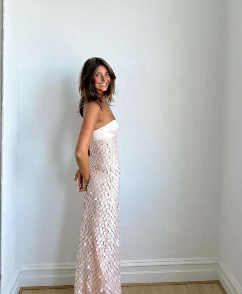 Spring Summer Tube Top Texture Fabric Lace Sequin Backless Maxi Dress