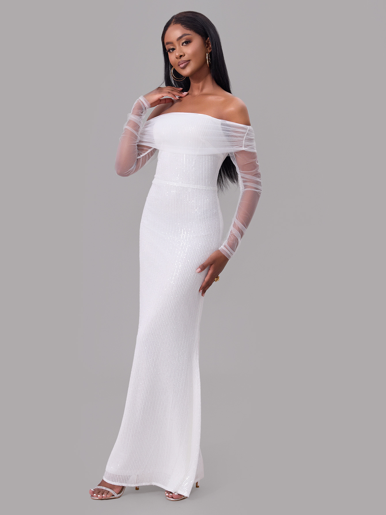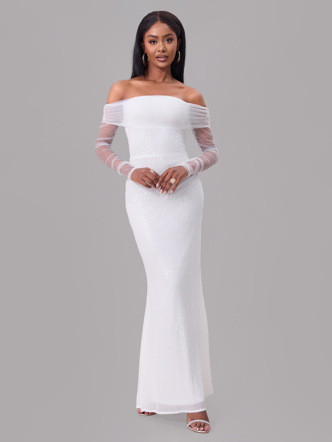 Spring Women Clothing Sexy off the Shoulder Mesh See through Maxi Dress Women