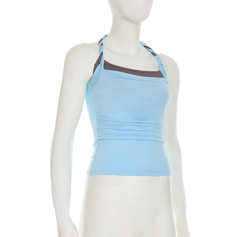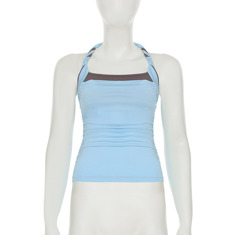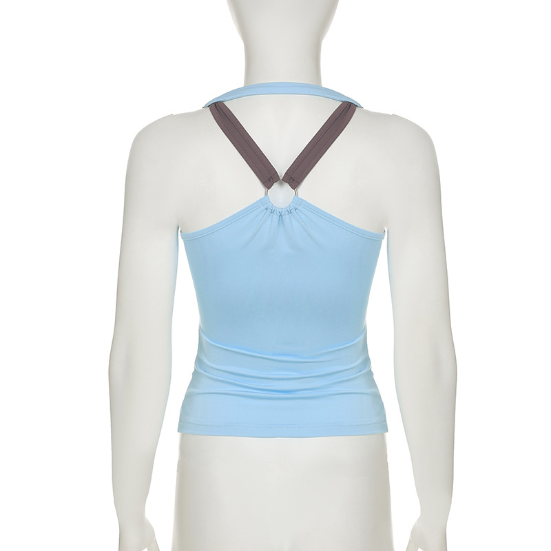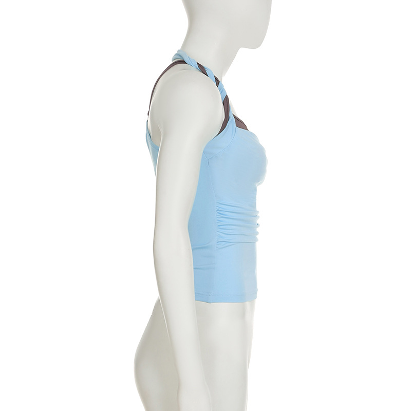 Summer Basic Contrast Colors False Two Piece Small Sling Vest Women Slim Fit Sexy Slim Backless