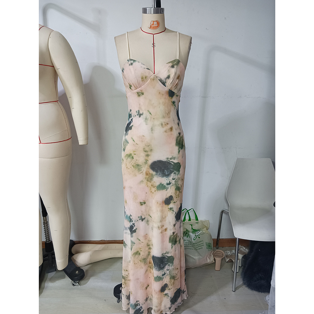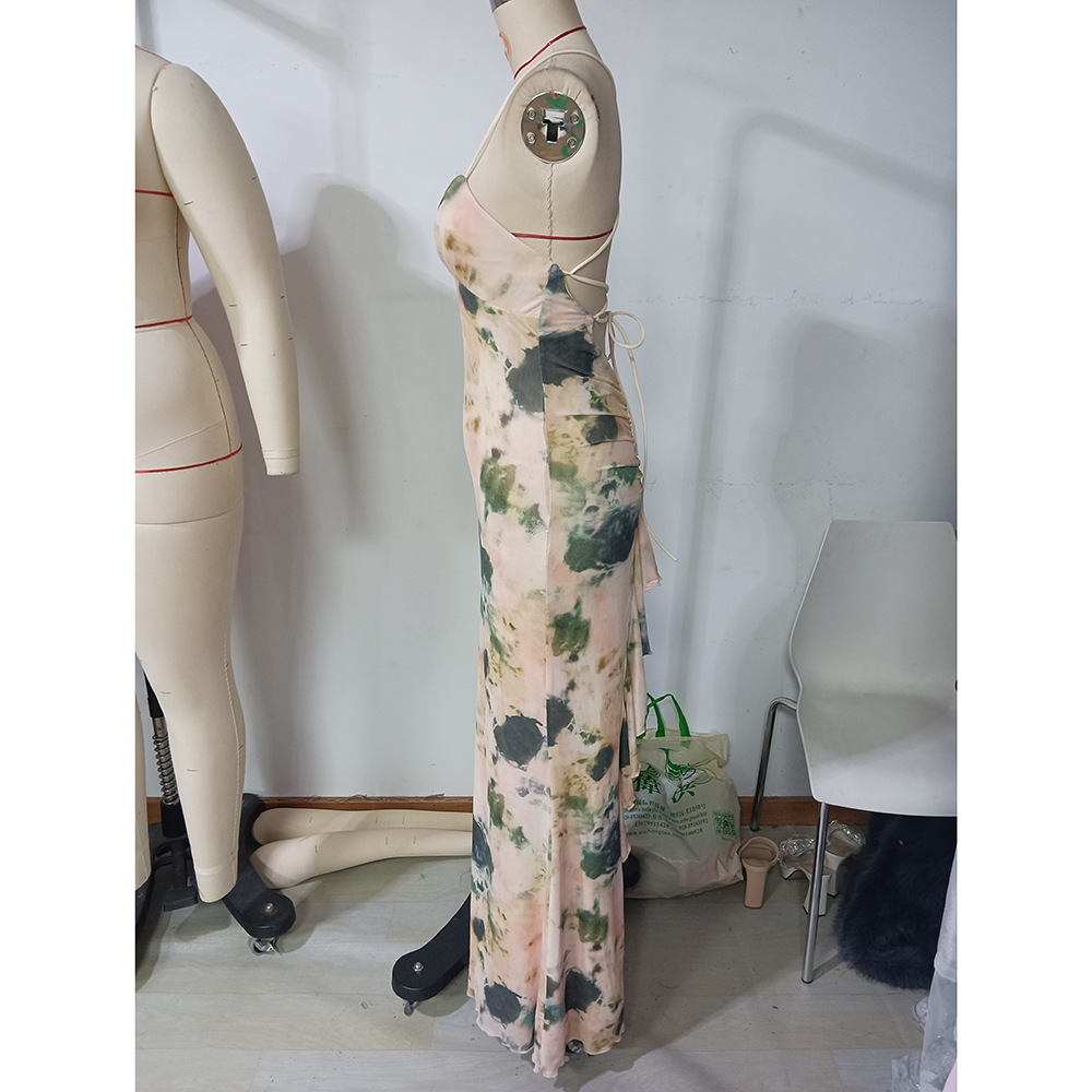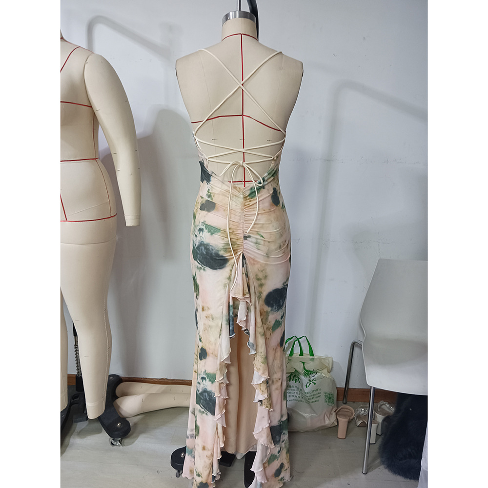 Summer Sexy Elegant Dress Printed Ruffled Backless Seaside Holiday Cami Dress