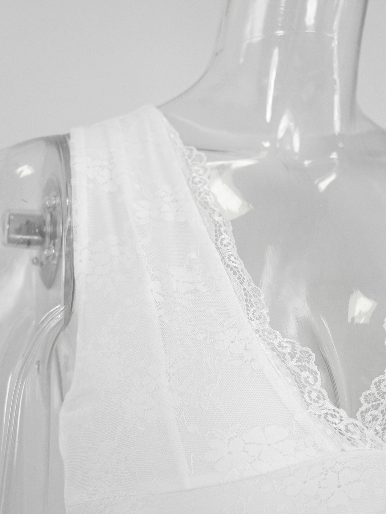 Summer Sexy V neck Women Clothing Dress Lace Stitching Side Slit Short Dress