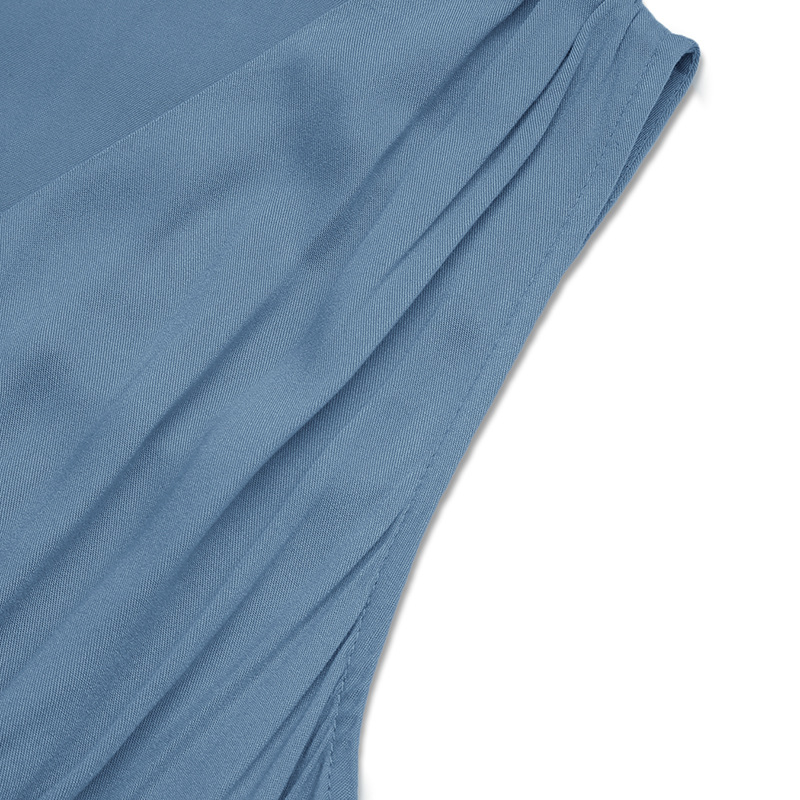 Summer Simple Midi Dress Split Light Blue Sleeveless Waist Dress