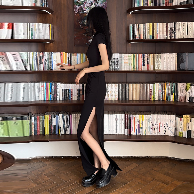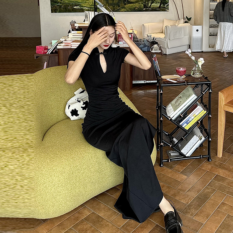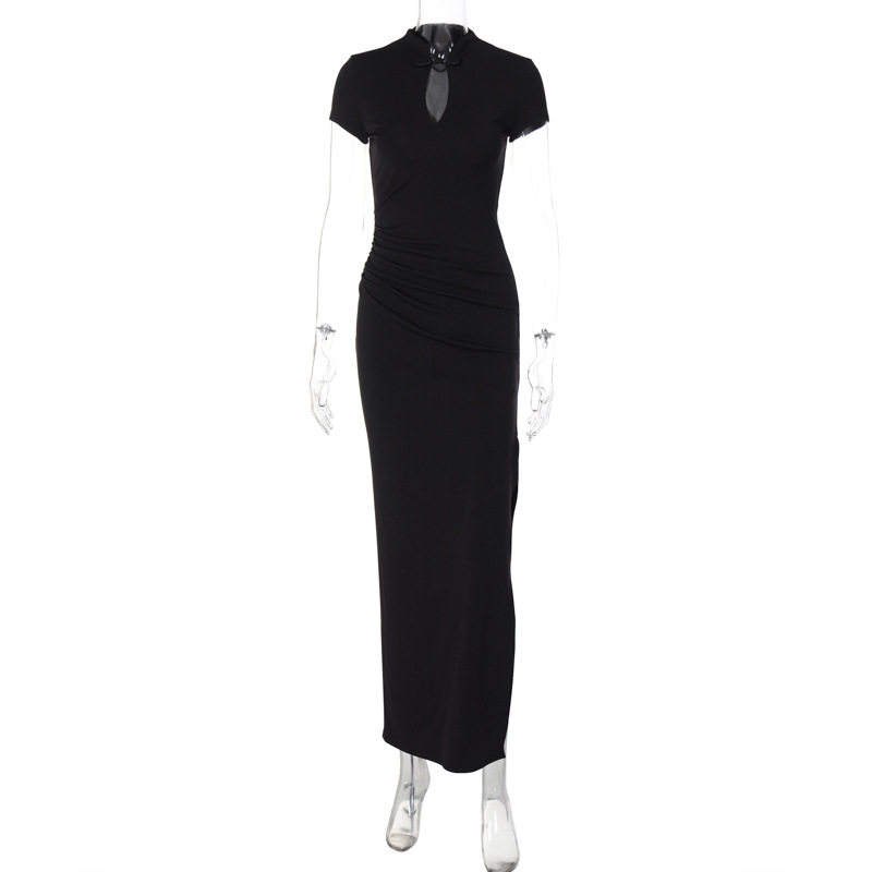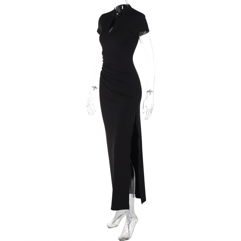 Summer Women Clothing Chinese Cheongsam Slit Waist Slimming Maxi Dress