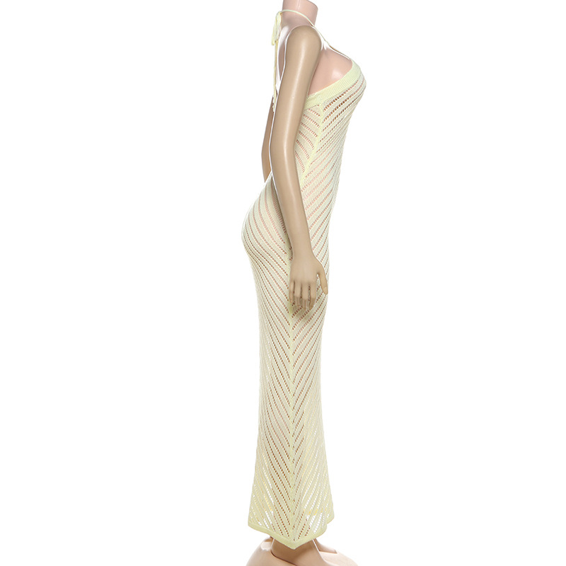 Summer Women Clothing Sexy Sexy Knitted Hollow Out Cutout out Halter Backless Slim Fit Maxi Dress
