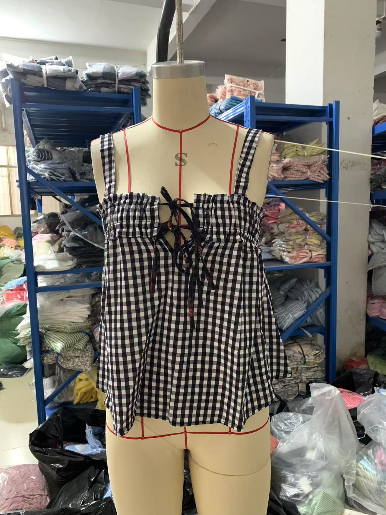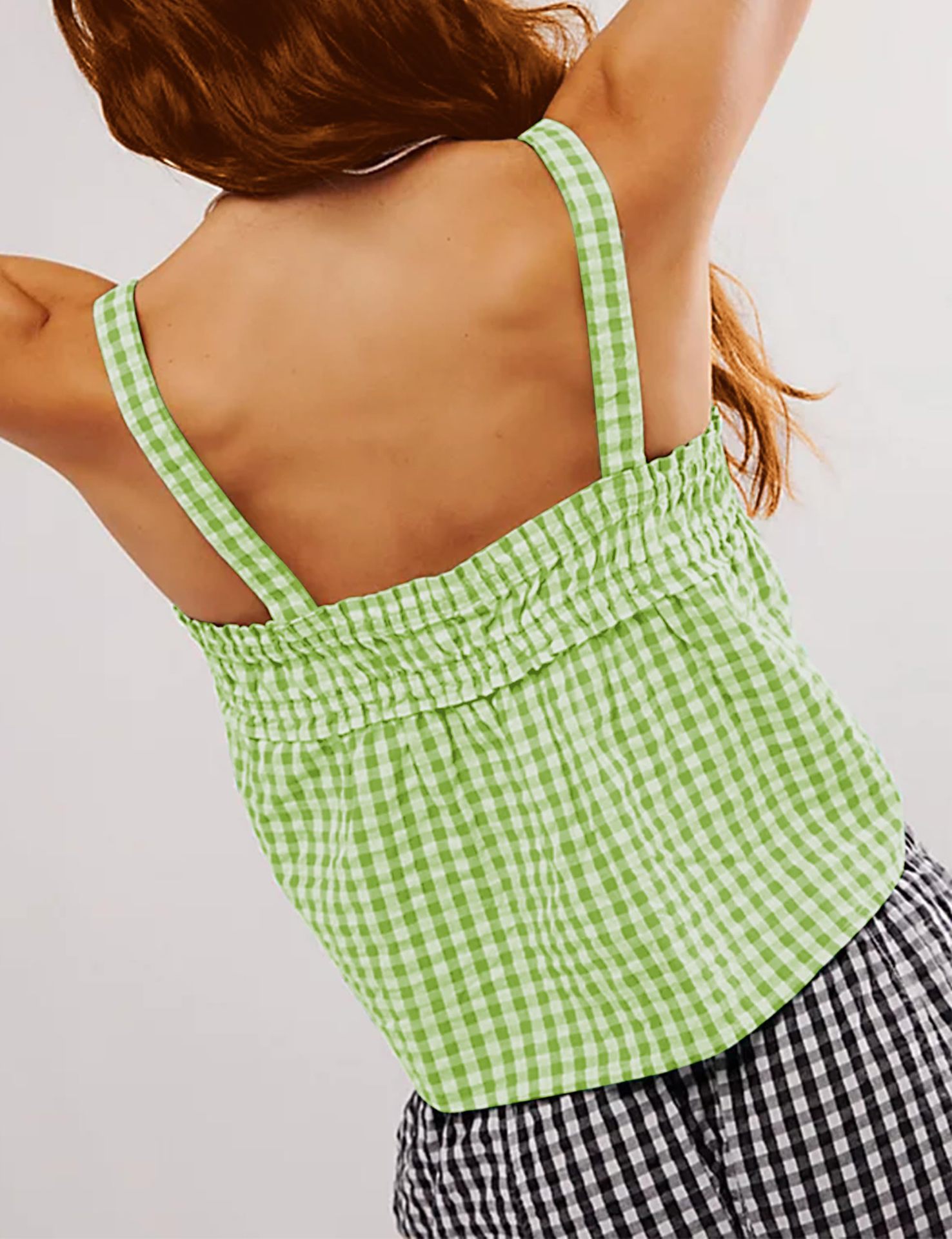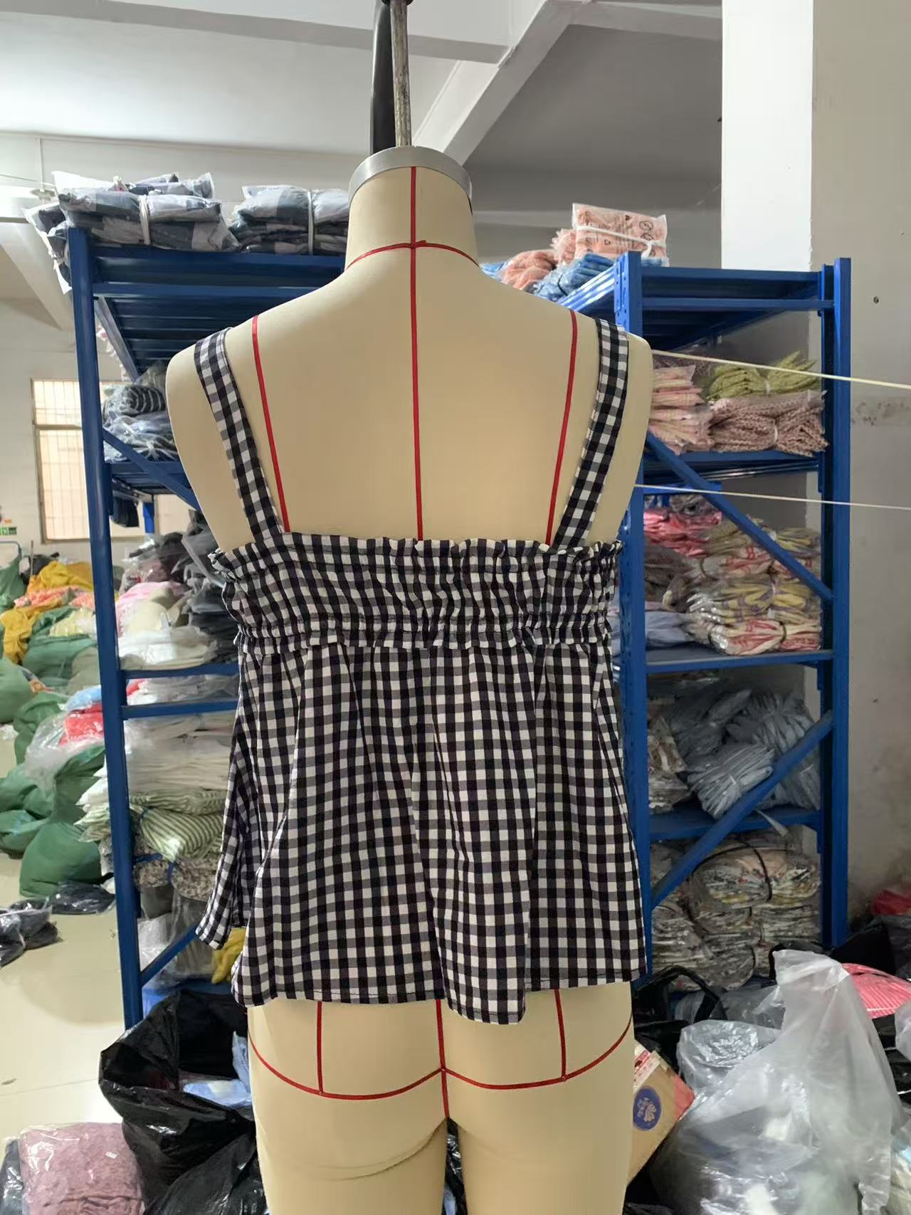 Summer Women Top Plaid Pleated Stitching Sexy Small Vest