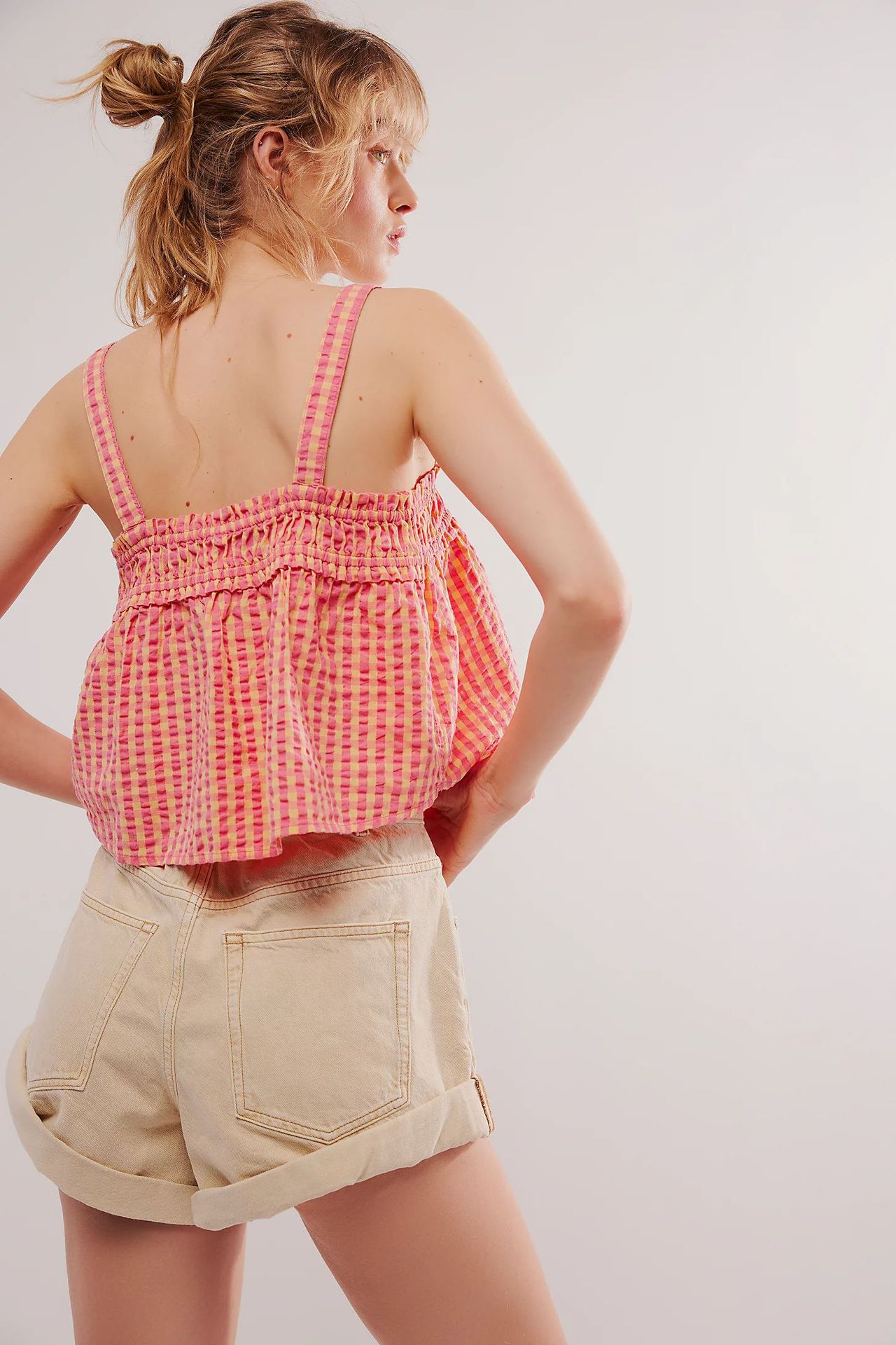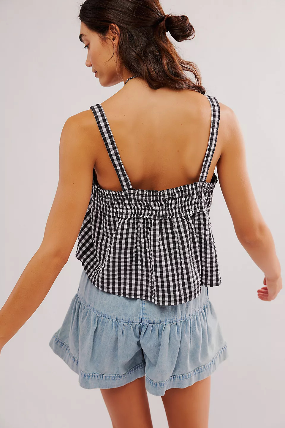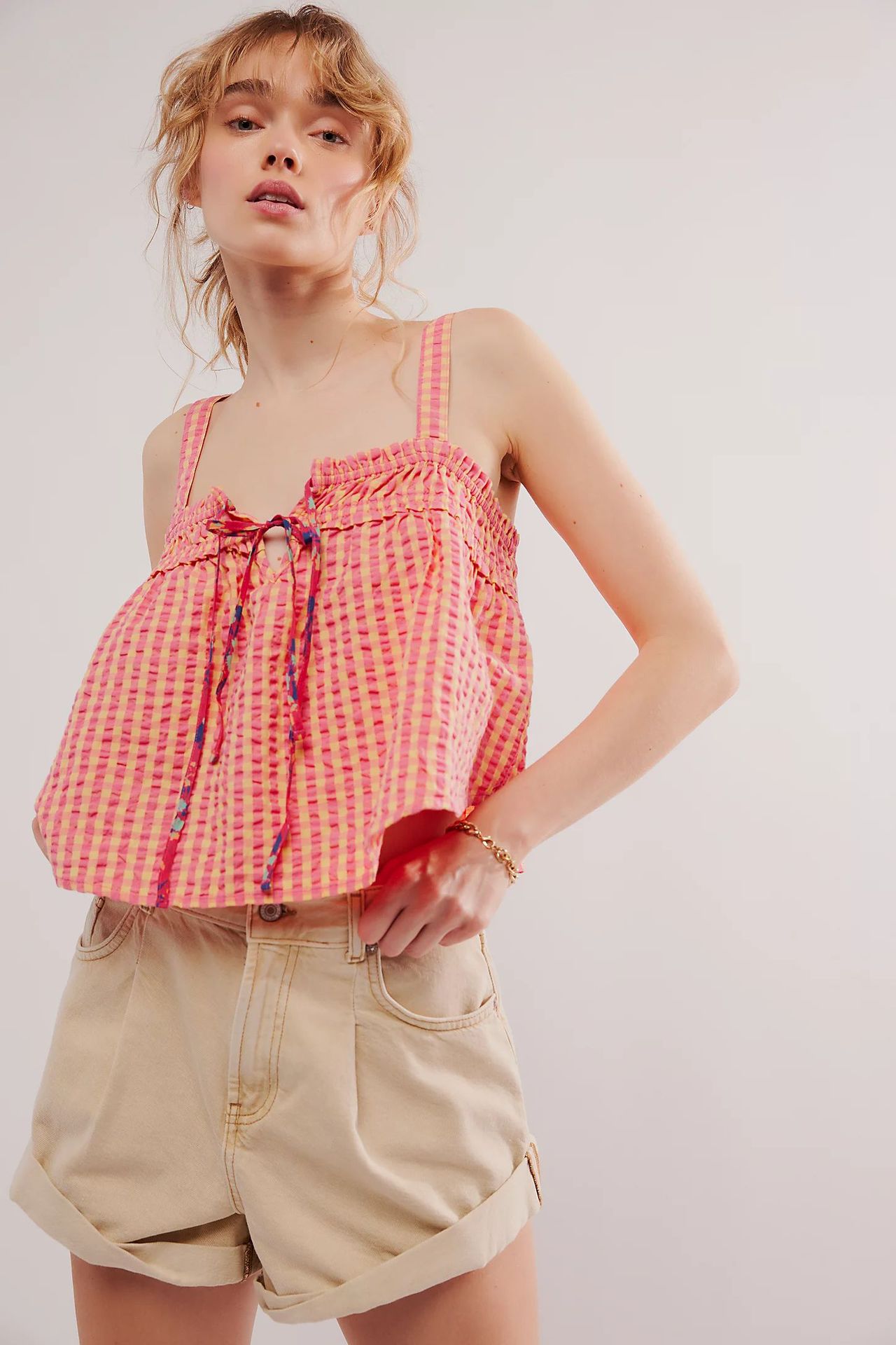 Summer Women Top Plaid Pleated Stitching Sexy Small Vest