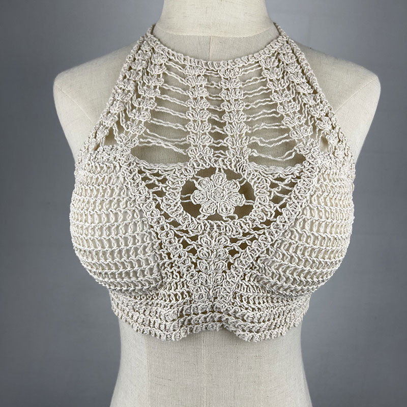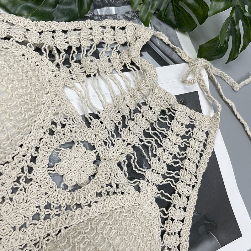 Weaving Cutout Camisole Seaside off the Shoulder Short Sexy Bottoming Strappy Tops