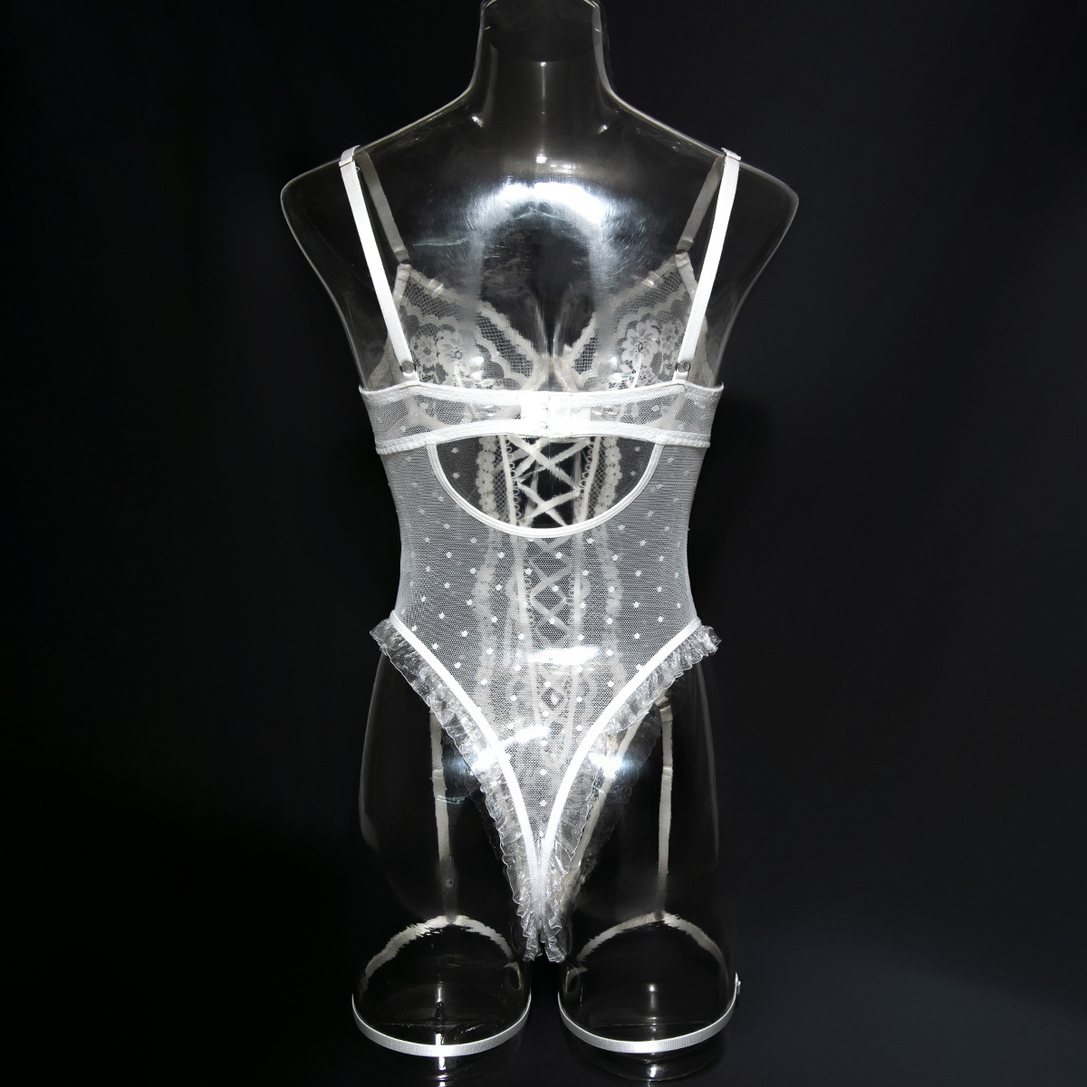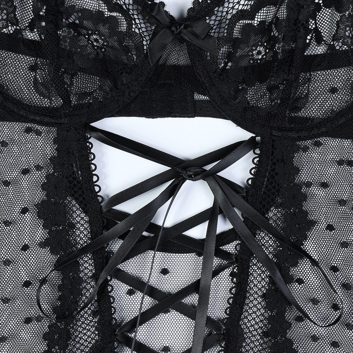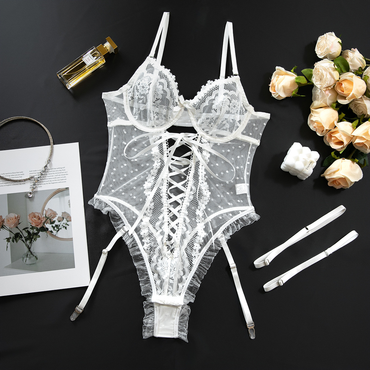 Women Clothing Lace Hollow Out Cutout Cross Strap Lace Sling Jumpsuit Sexy Underwear