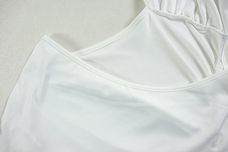 Women Clothing Pleated Elegant Solid Color Asymmetric Dress Diagonal Collar Single Shoulder Suspender Split Dress