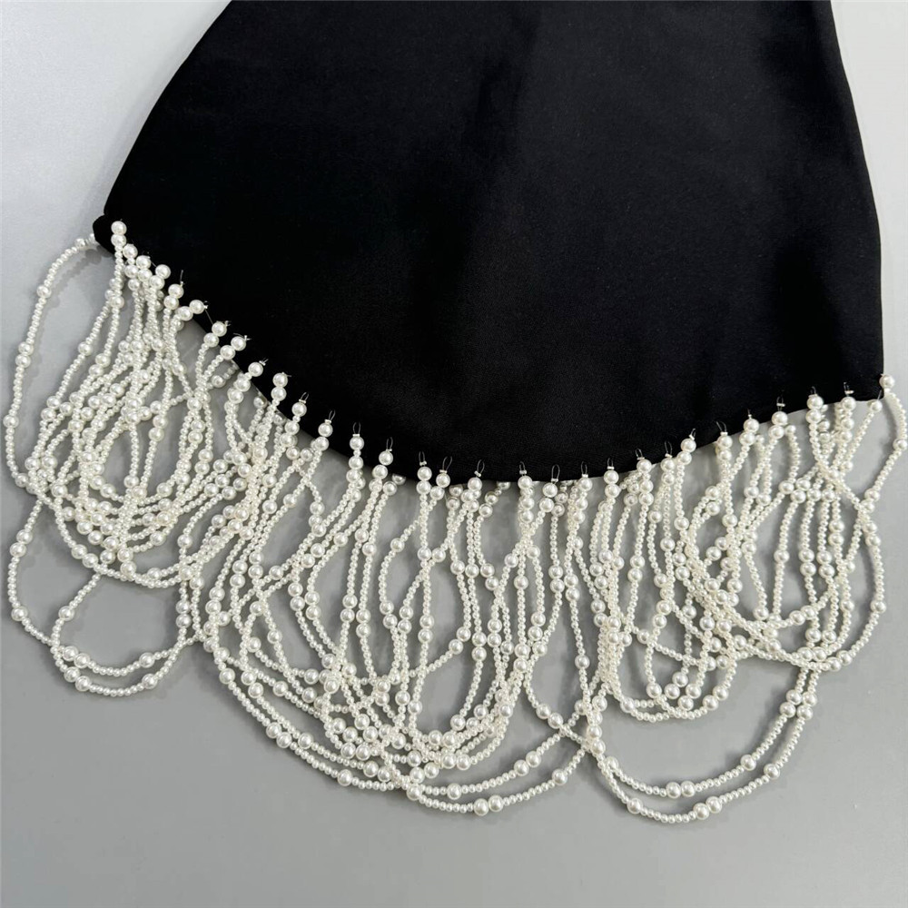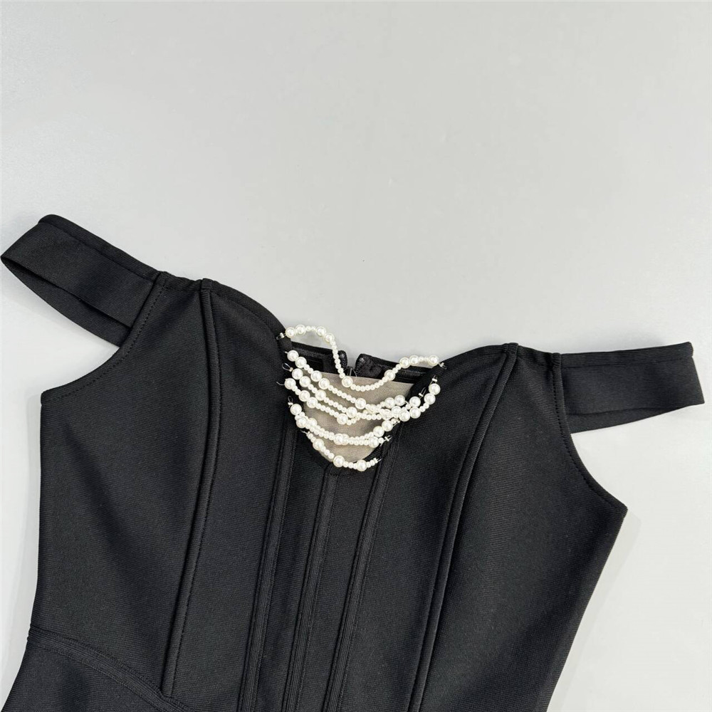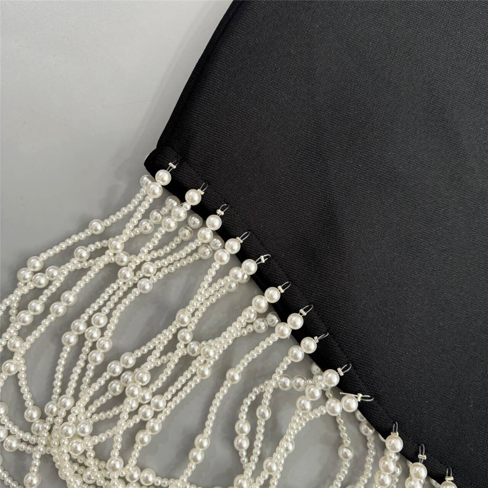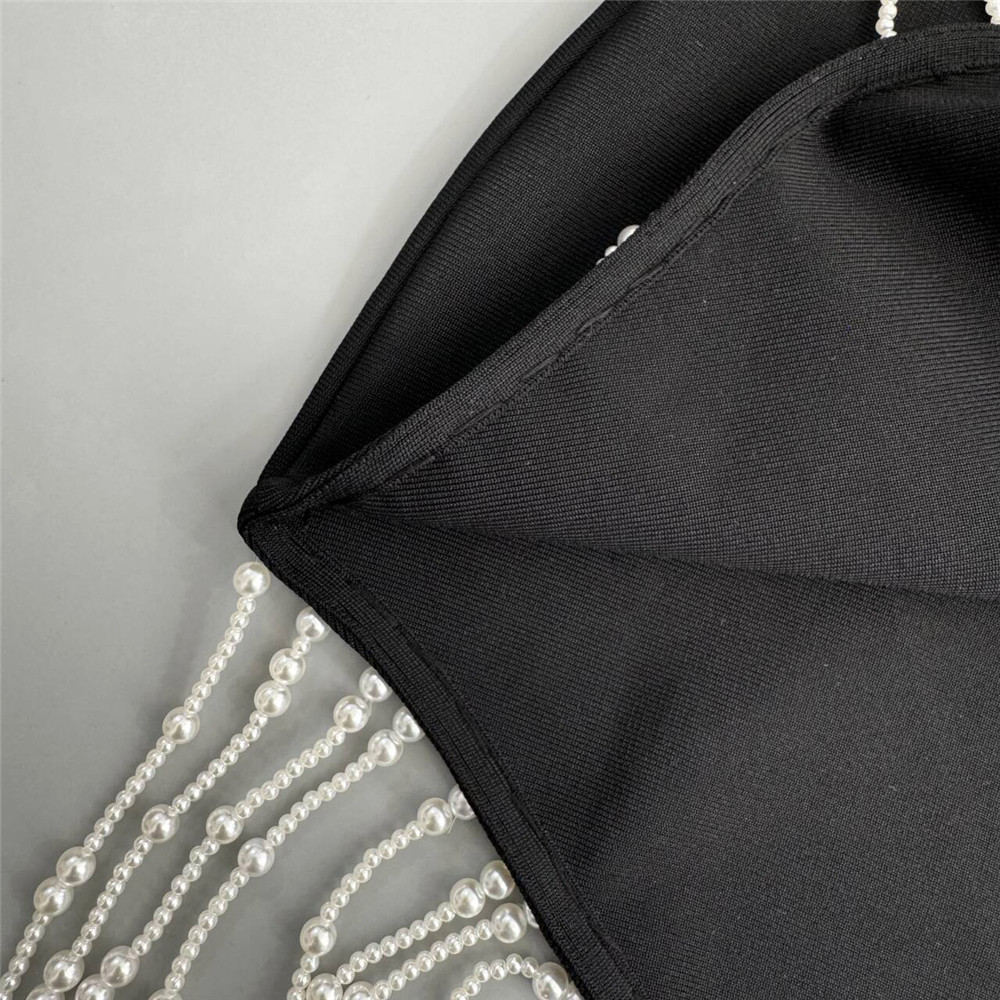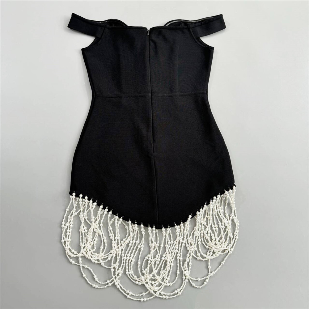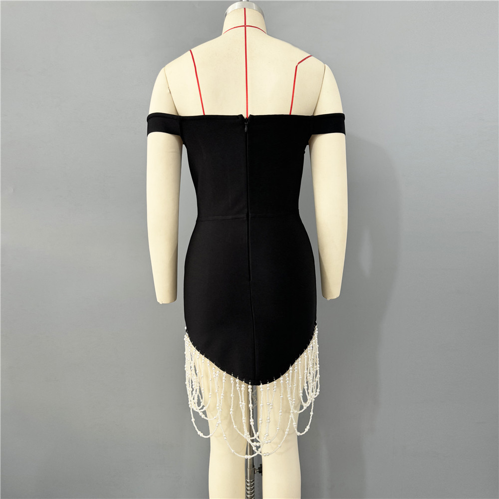 Women Clothing Sexy off the Shoulder Heavy Industry Beads Tassel Decoration Bandage Dress Party Short Evening Dress