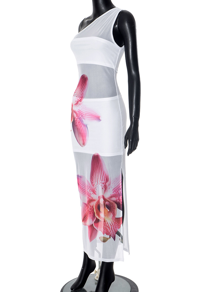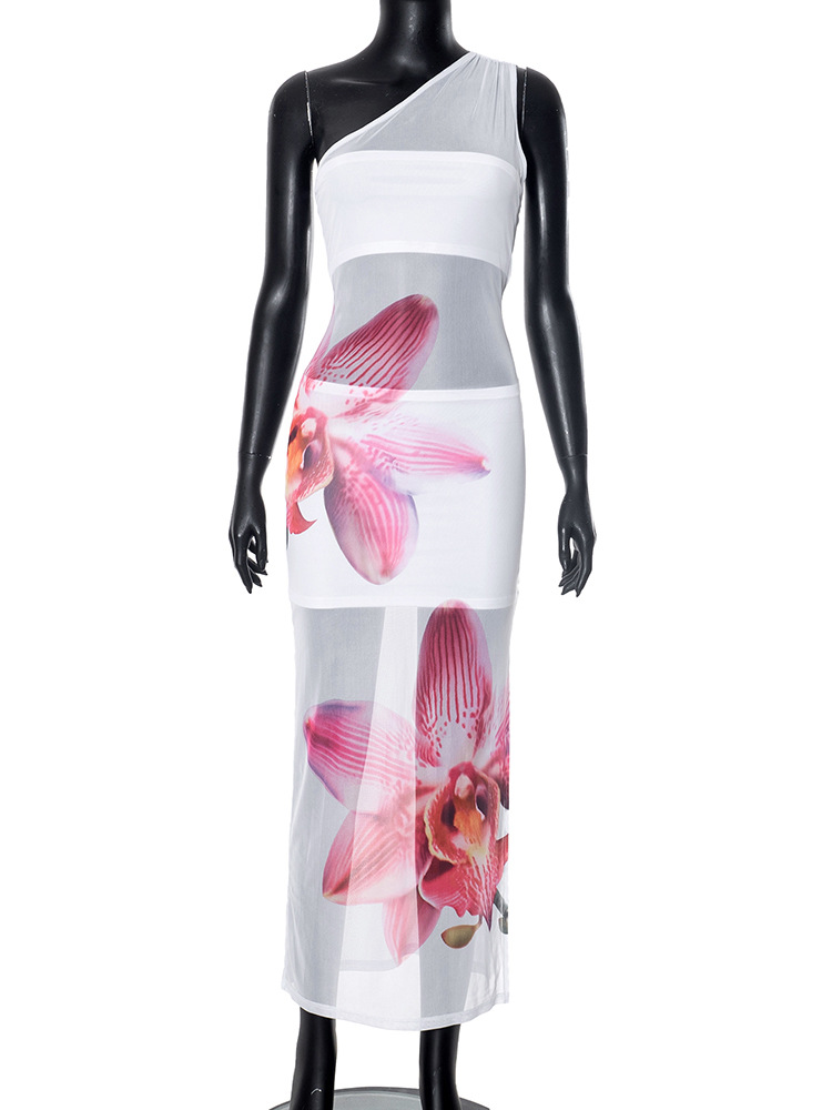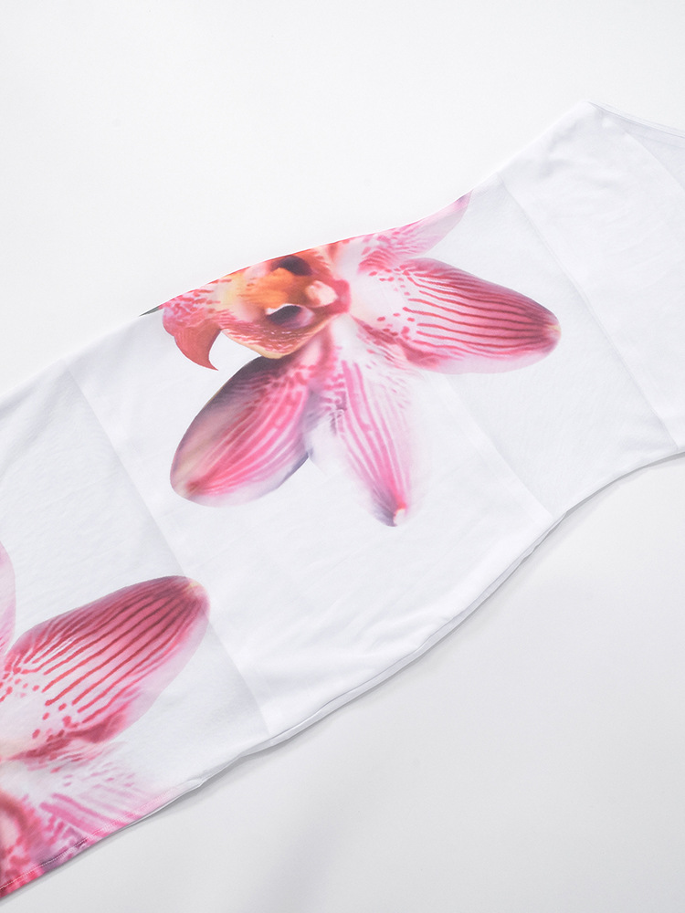 Women Clothing Sheath Shoulder Orchid Printing Lining Tube Top Short Dress Maxi Dress