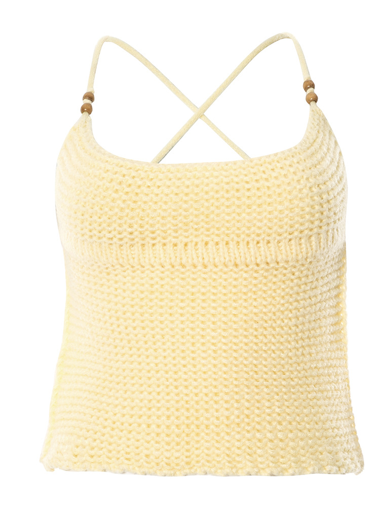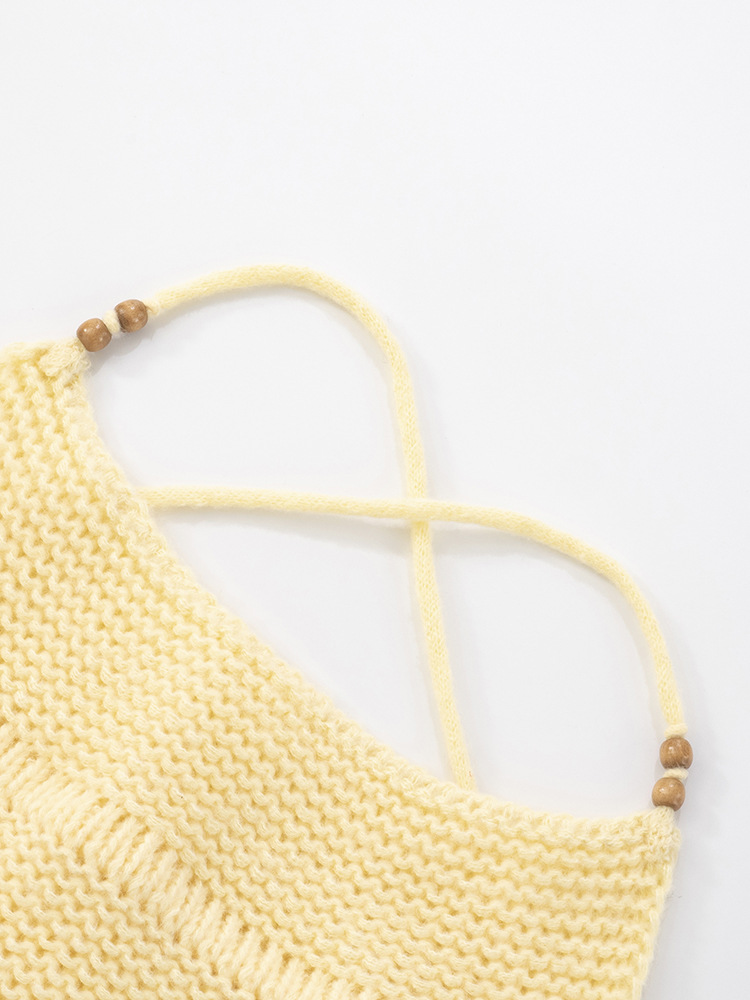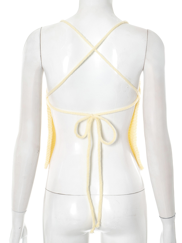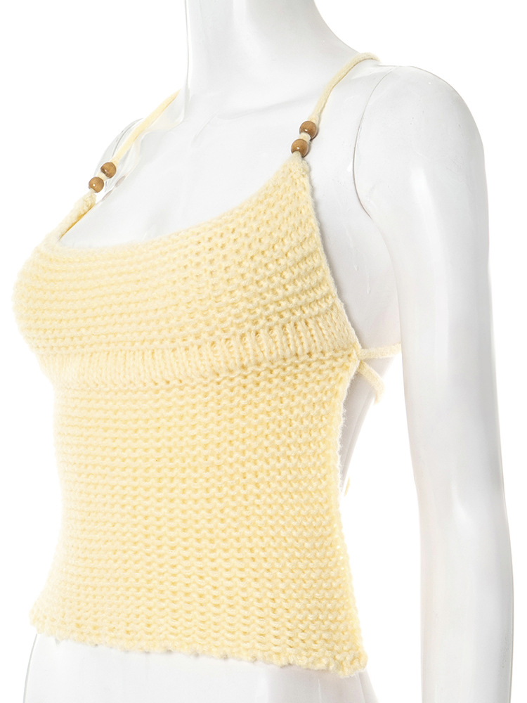 Women Clothing Solid Color Sleeveless Backless Lace up U Collar Beads Tight Woolen Vest
