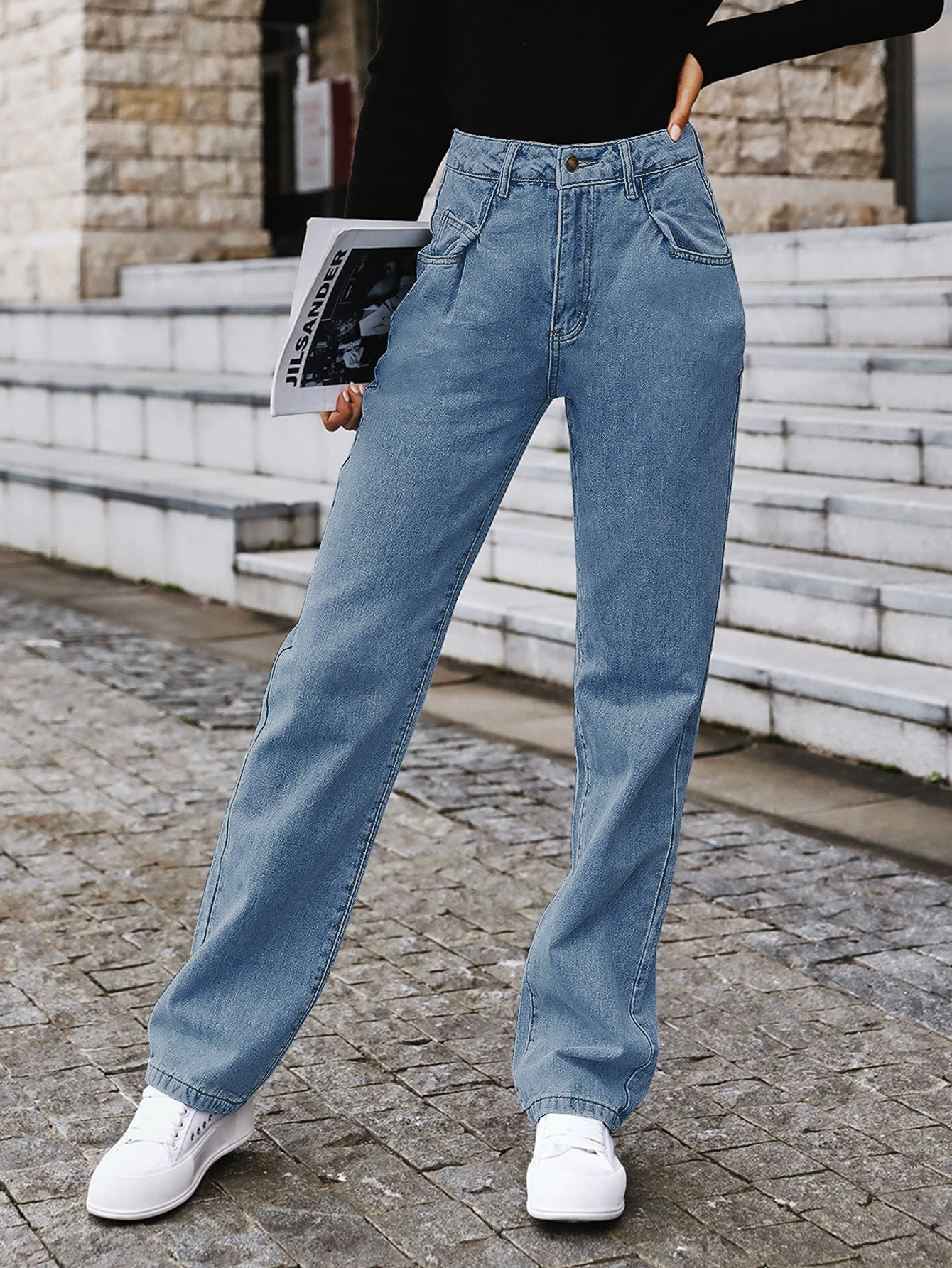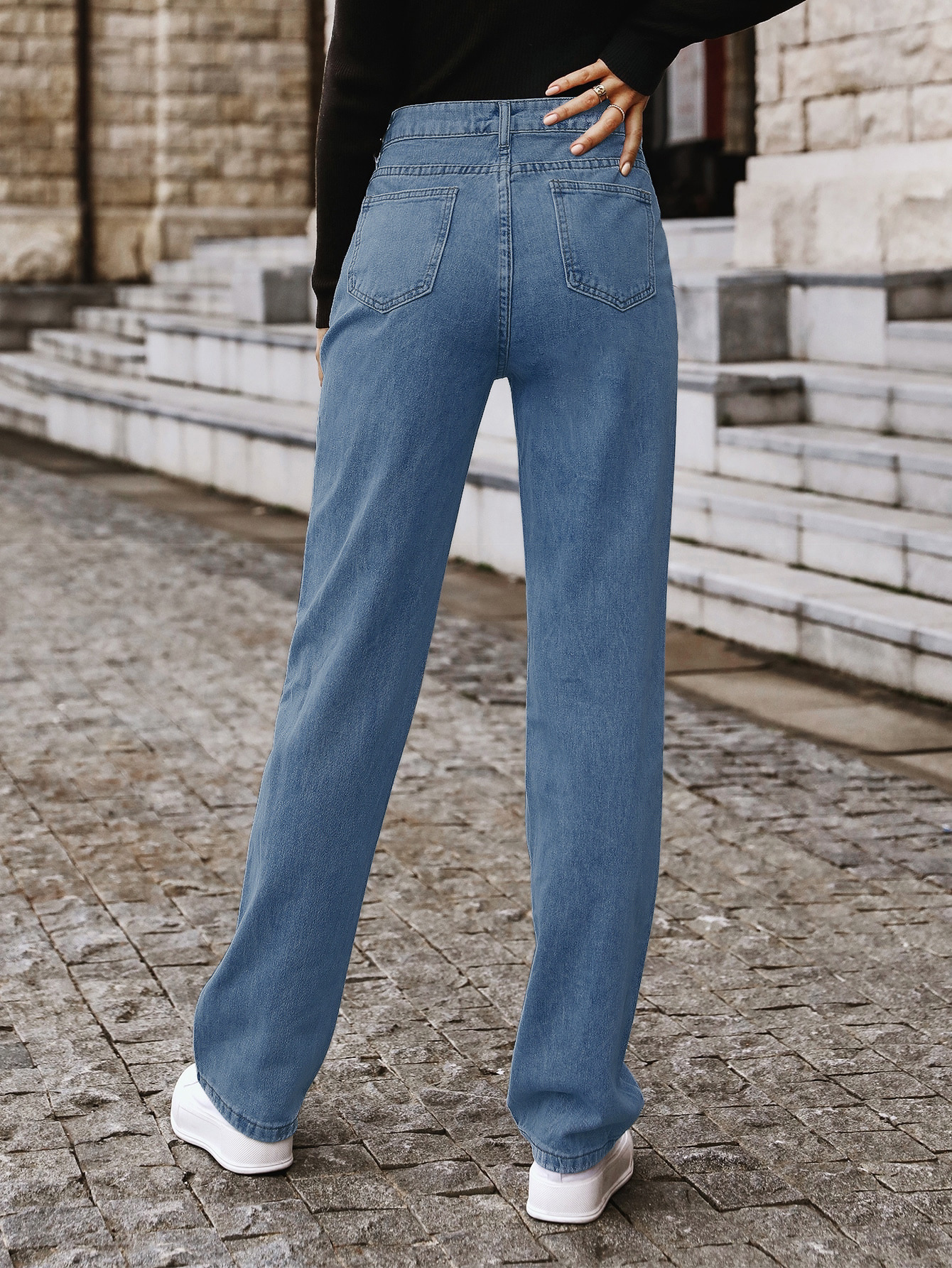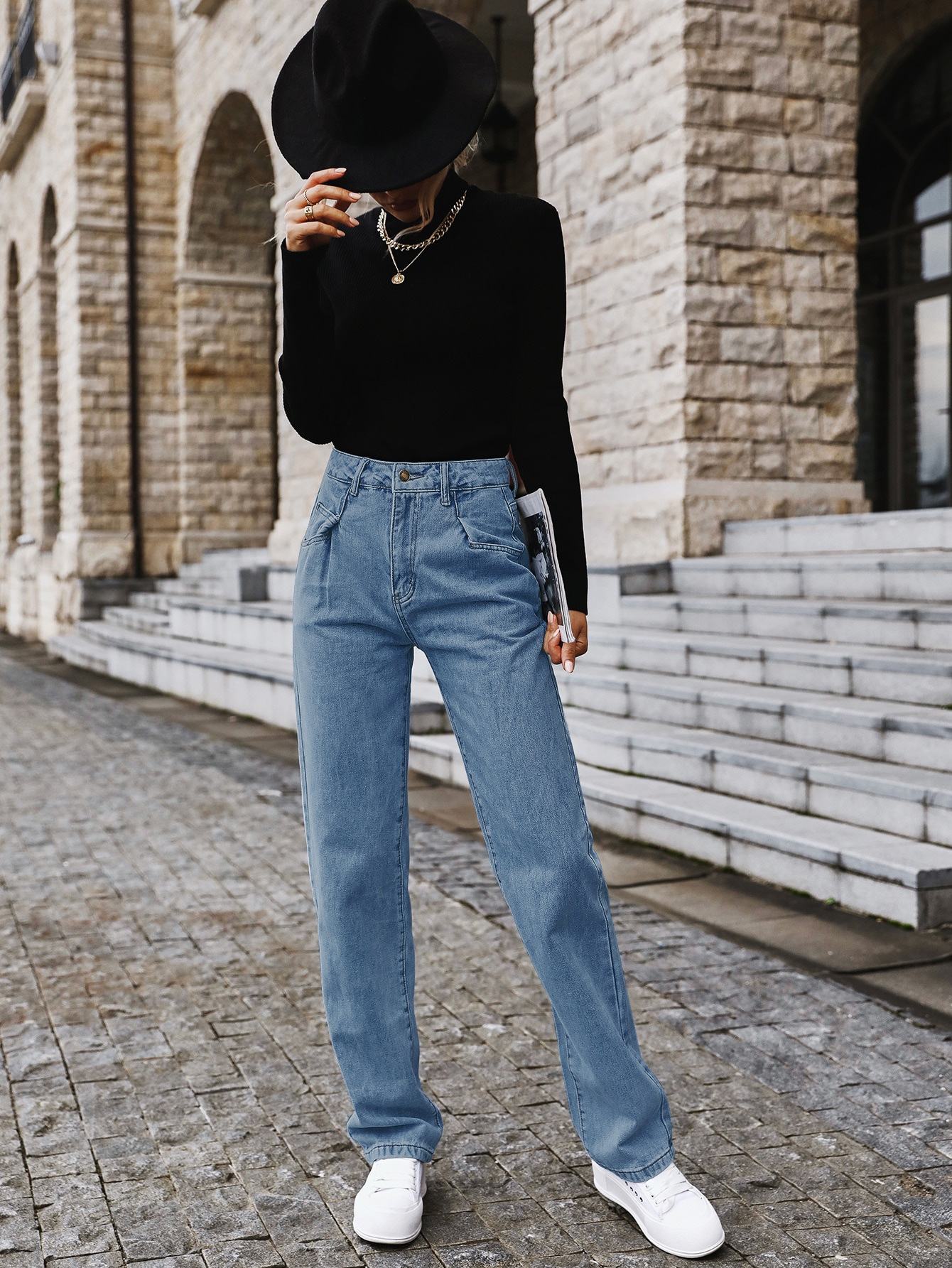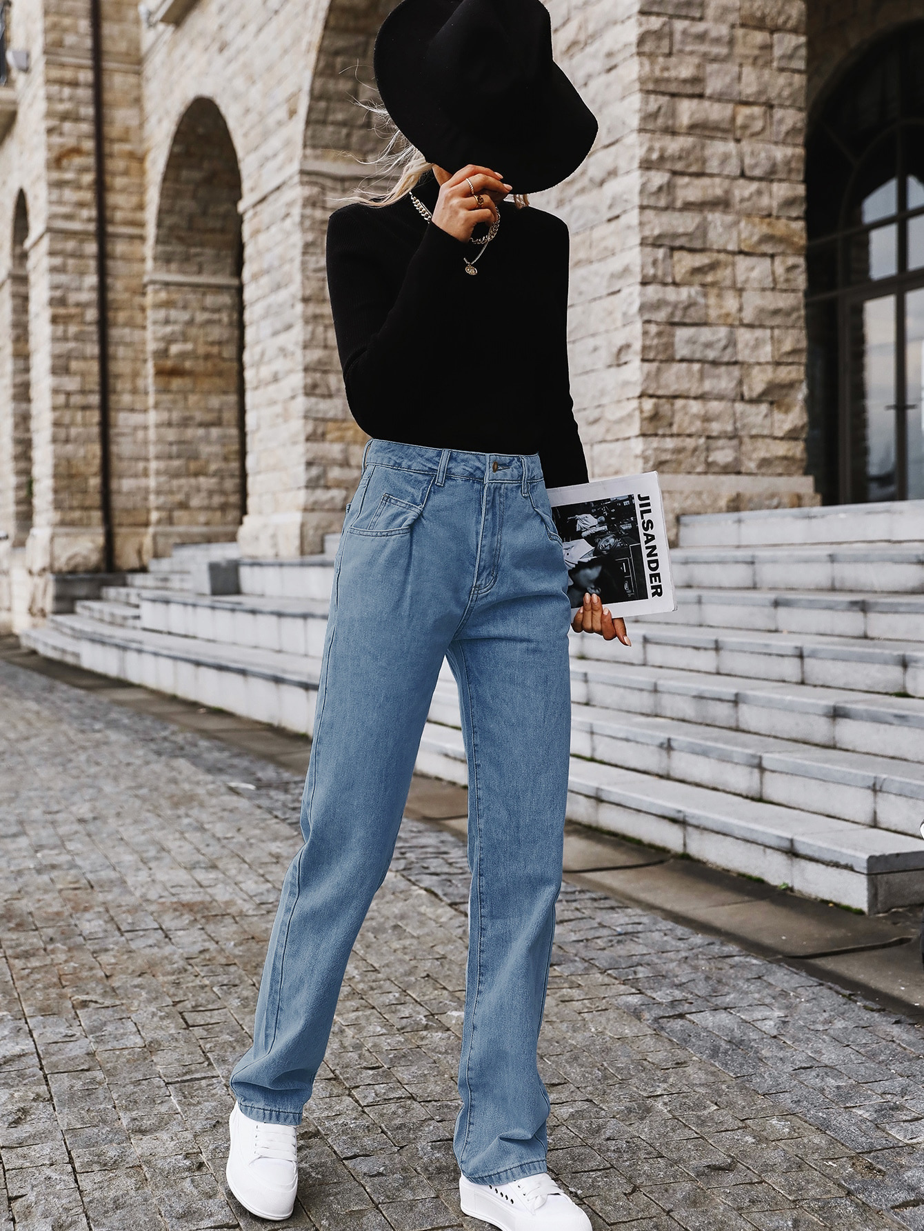 Women Clothing Straight High Waist Slimming Fashionable Jeans Trousers