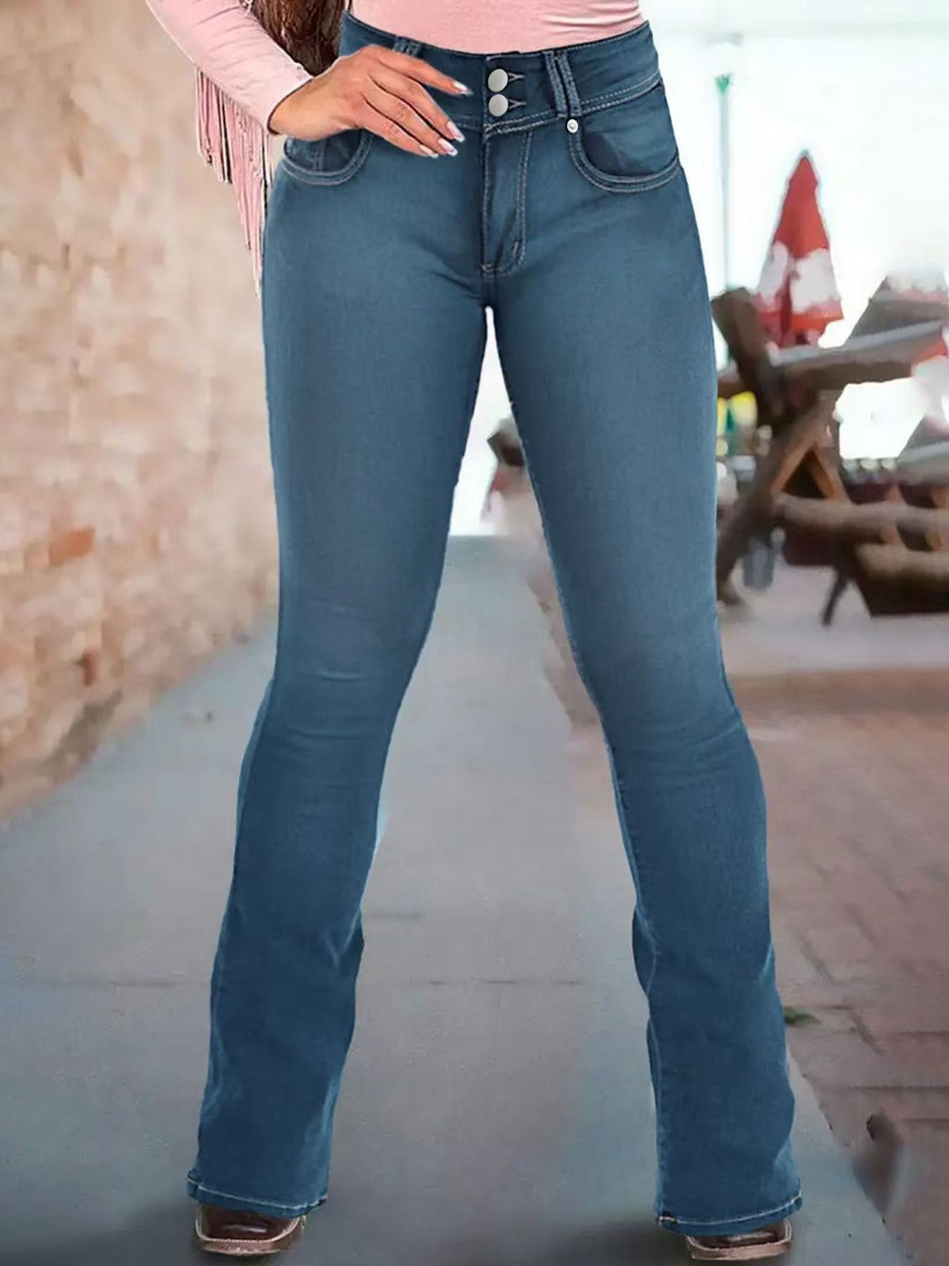 Women Clothing Stretch Hip Lift Double Waist Washed Jeans Women