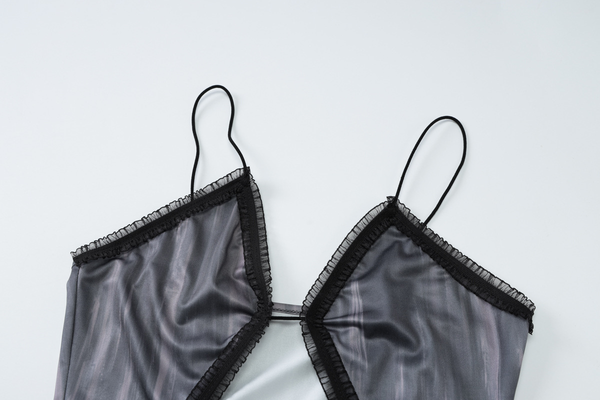 Women Clothing Summer Pleated Lace Sexy Sexy Hollow Out Cutout Sleeveless Sling Dress